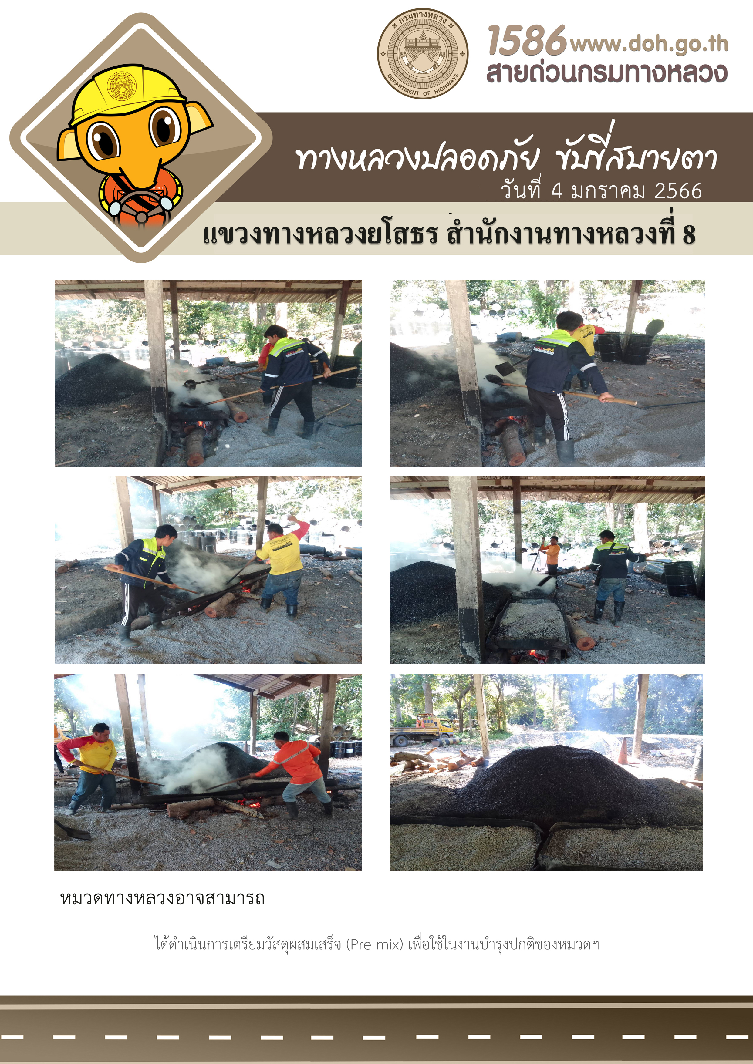 วันที่ 4 มกราคม 2566 หมวดทางหลวงอาจสามารถ ได้ดำเนินการเตรียมวัสดุผสมเสร็จ (Pre mix) เพื่อใช้ในงานบำรุงปกติของหมวดฯ
