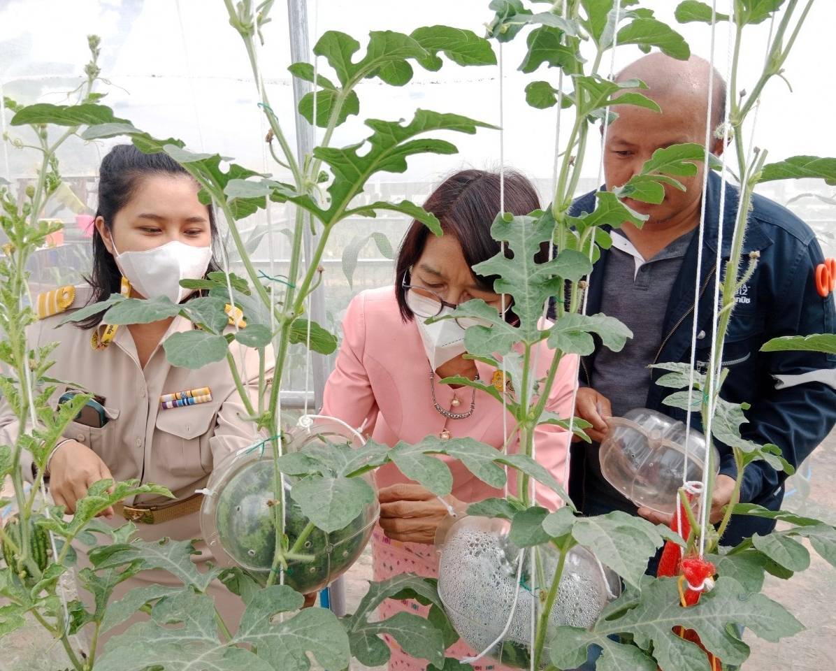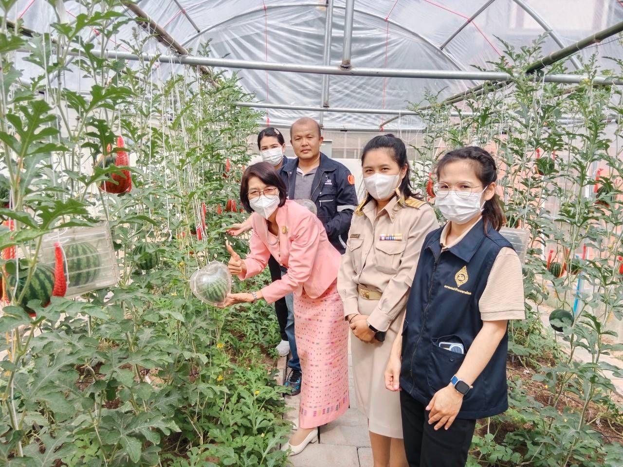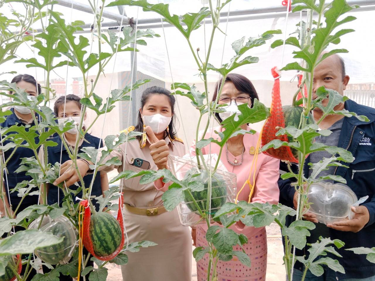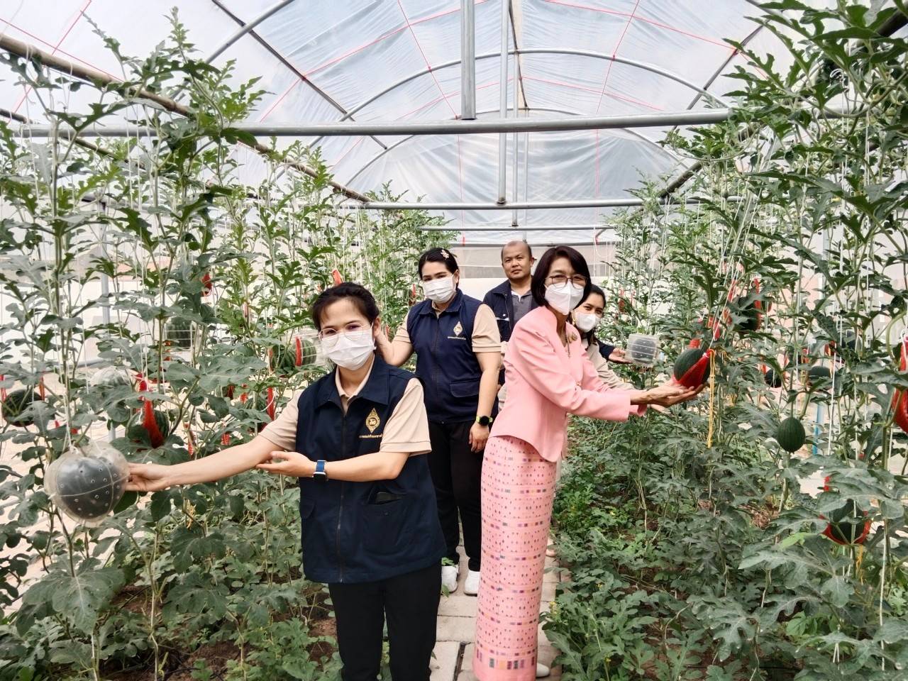 ๙ มกราคม ๒๕๖๖ ร่วมใส่แม่พิมพ์รูปทรงหัวใจ และลูกบาศก์ ให้กับแตงโม ในโรงเรือนต้นแบบการปลูกแตงโมอินทรีย์แบบลอยฟ้า ณ บริเวณโรงเรือนต้นแบบแตงโมอินทรีย์ ด้านหลังอาคารห้องสมุดประชาชน “เฉลิมราชกุมารี” จังหวัดยโสธร