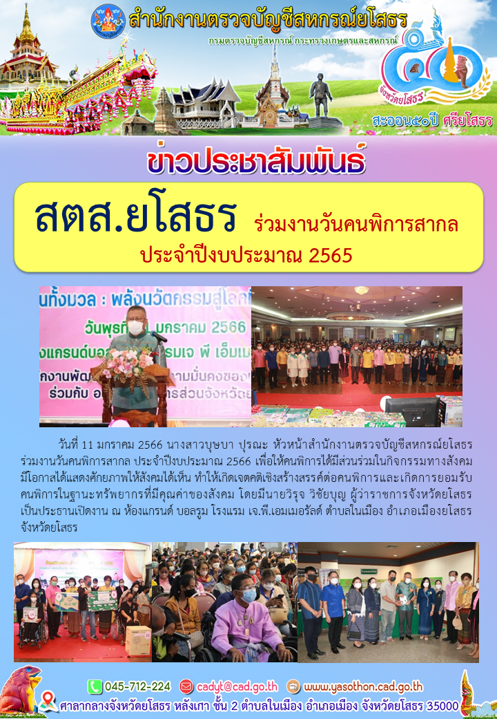 สตส.ยโสธร ร่วมงานวันคนพิการสากล ประจำปีงบประมาณ 2565