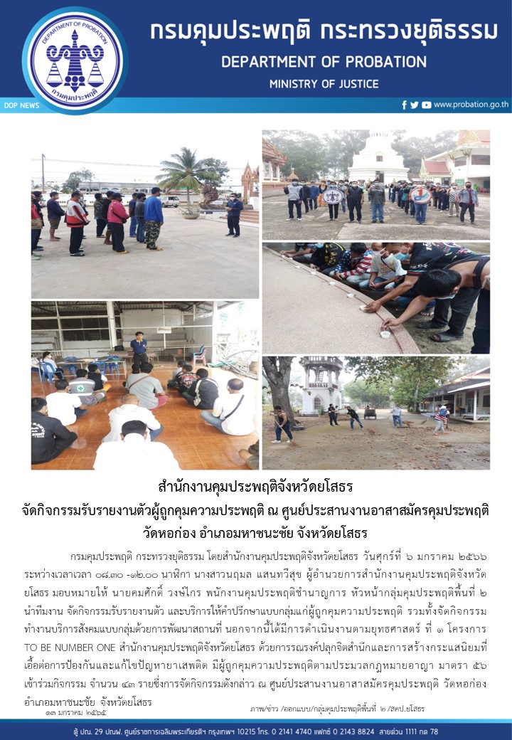 ผู้โพสต์ : [สำนักงานคุมประพฤติจังหวัดยโสธร] ทั่วไป