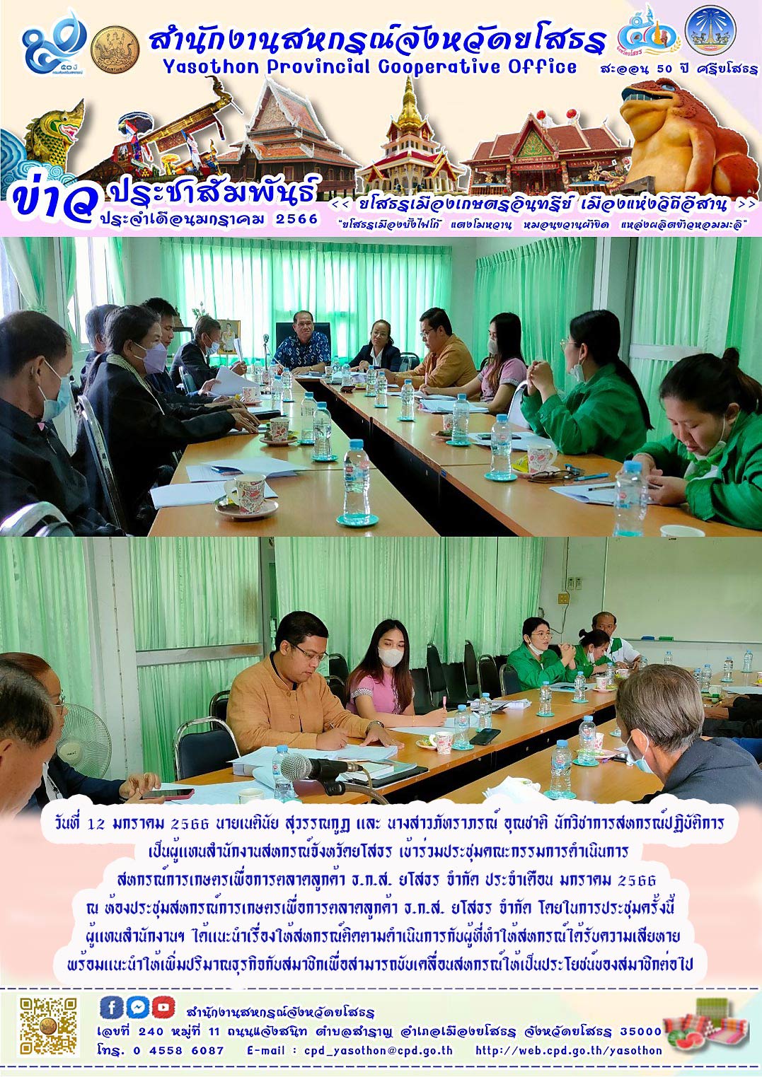 เจ้าหน้าที่สำนักงานสหกรณ์จังหวัดยโสธร เข้าร่วมประชุมคณะกรรมการดำเนินการสหกรณ์การเกษตรเพื่อการตลาดลูกค้า ธ.ก.ส. ยโสธร จำกัด ประจำเดือน มกราคม 2566 ณ ห้องประชุมสหกรณ์การเกษตรเพื่อการตลาดลูกค้า ธ.ก.ส. ยโสธร จำกัด
