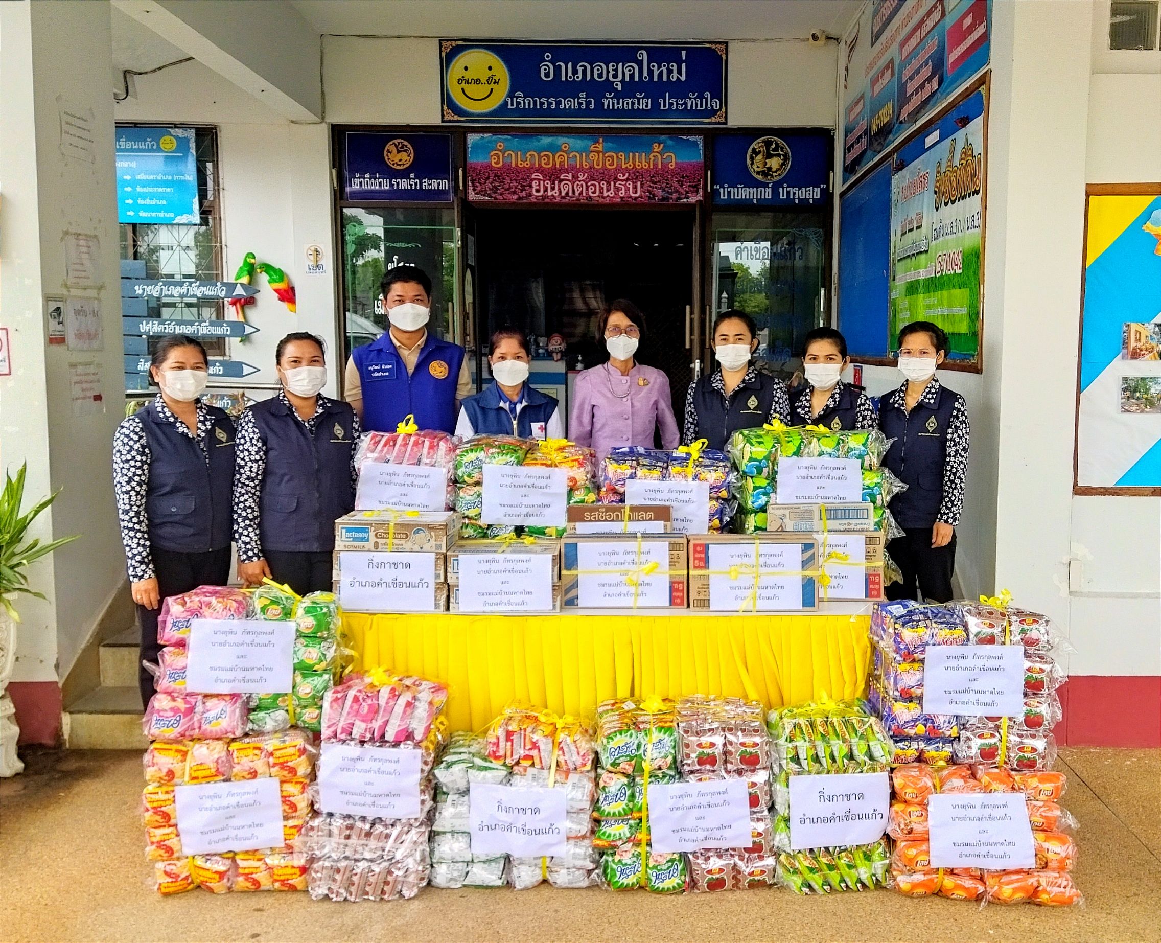 ๑.เวลา ๐๙.๒๐ น. มอบขนม และนมกล่อง ให้กับนักเรียนโรงเรียนทองขาวคำเขื่อนแก้ว