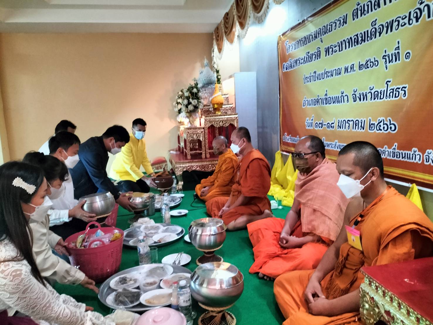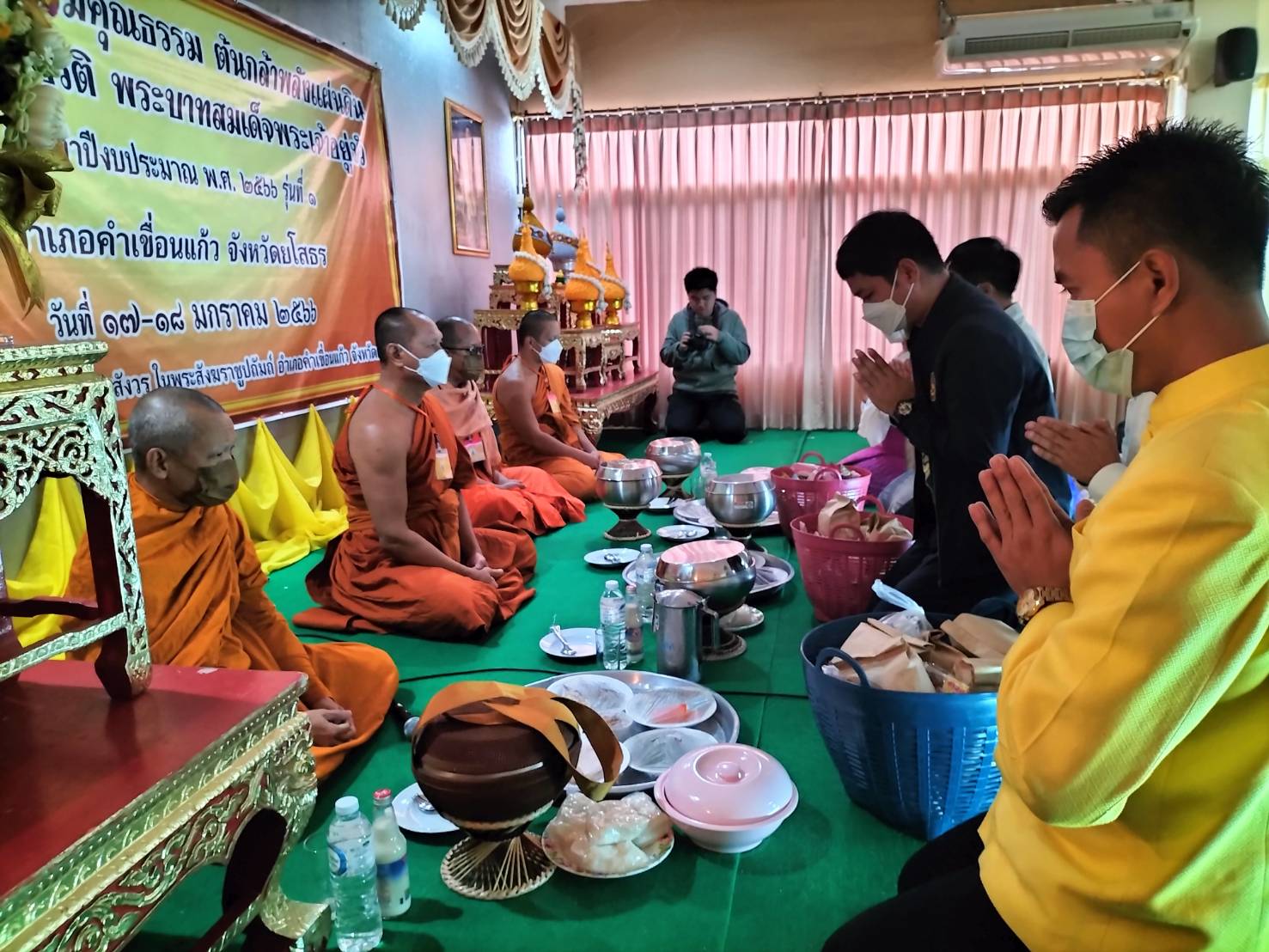 วันที่ 18 ม.ค. 2566 (15:02 น.)วันที่ ๑๘ มกราคม ๒๕๖๖ เวลา ๐๗.๓๐ น. นางยุพิน ภัทรกุลพงศ์ นายอำเภอคำเขื่อนแก้ว มอบหมายให้ นายชัยนเรศ ยอดแตง ปลัดอำเภอหัวหน้ากลุ่มงานบริหารงายปกครอง และ ปลัดอำเภอ งานสำนักงานอำเภอ ร่วมกิจกรรมตักบาตรสาธิตเชิงปฏิบัติการจริง ตามโครงการอบรมคุณธรรม ต้นกล้าพลังแผ่นดิน เฉลิมพระเกียรติพระบาทสมเด็จพระเจ้าอยู่หัว ประจำปีงบประมาณ พ.ศ. ๒๕๖๖ รุ่นที่ ๑ อำเภอคำเขื่อนแก้ว จังหวัดยโสธร ณ โรงเรียนสมเด็จพระญาณสังวร ในพระสังฆราชูปถัมภ์ ซึ่งดำเนินการฝึกอบรมวันที่ ๑๗-๑๘ มกราคม ๒๕๖๖ รวมระยะเวลาฝึกอบรม ๒ วัน