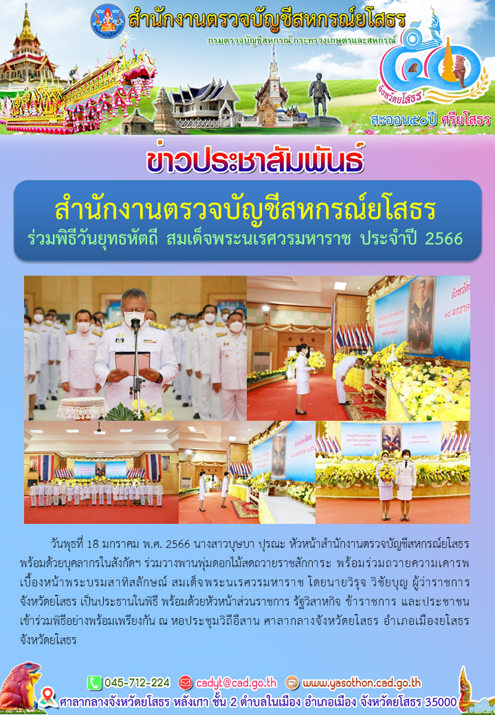 สำนักงานตรวจบัญชีสหกรณ์ยโสธร ร่วมพิธีวันยุทธหัตถี สมเด็จพระนเรศวรมหาราช ประจำปี 2566