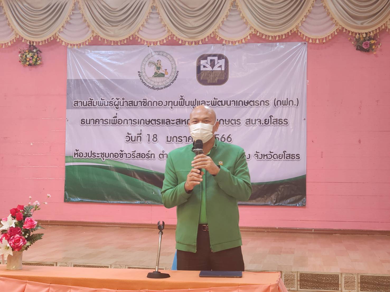 สานสัมพันธ์ผู้นำสมาชิกกองทุนฟื้นและพัฒนาเกษตร (กฟก.) และองค์กรเกษตรกร เพื่อเป็นการสร้างความสัมพันธ์อันดีระหว่างธนาคาร ธ.ก.ส. กับสมาชิก กฟก.และส่วนราชการที่เกี่ยวข้อง ณ ห้องประชุมโรงแรม กอข้าวคันทรี่ รีสอร์ท ตำบลตาดทอง อำเภอเมืองยโสธร จังหวัดยโสธร
