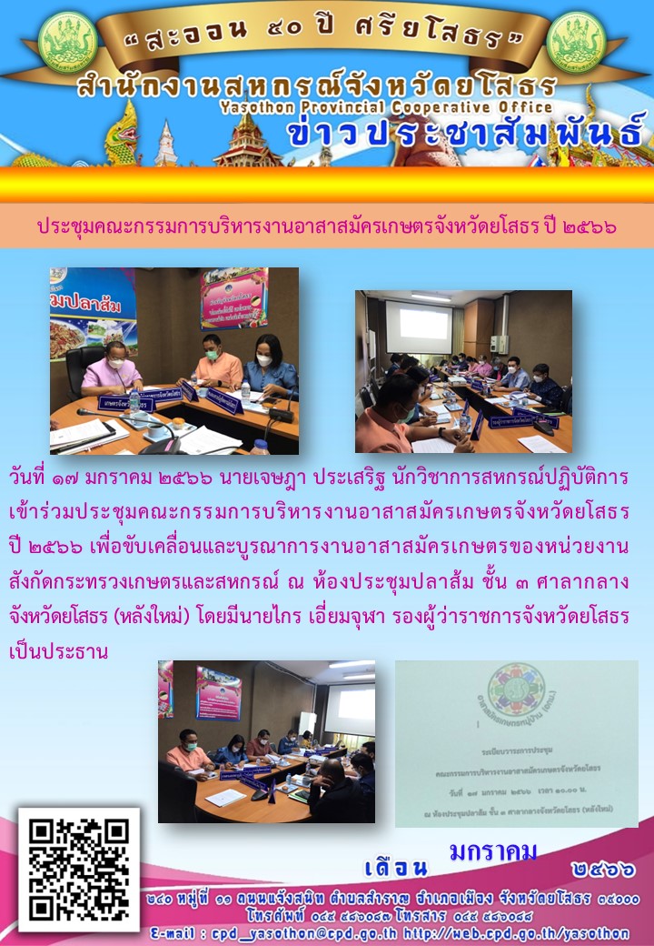 ผู้โพสต์ : [สำนักงานสหกรณ์จังหวัดยโสธร] ทั่วไป