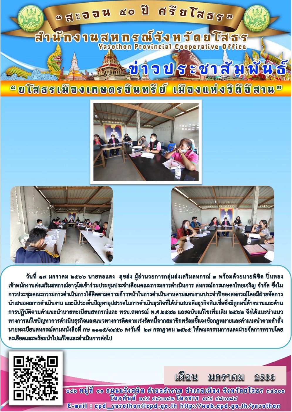 ผู้โพสต์ : [สำนักงานสหกรณ์จังหวัดยโสธร] ทั่วไป