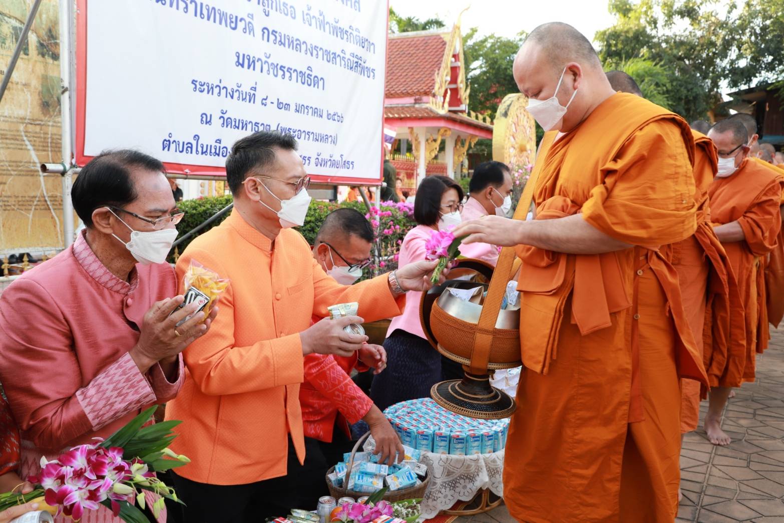 ร่วมกิจกรรมทำบุญตักบาตรพระนวกะ 99 รูป ถวายพระพรชัยมงคลแด่สมเด็จพระเจ้าลูกเธอ เจ้าฟ้าพัชรกิติยาภา นเรนทิราเทพยวดี กรมหลวงราชสาริณีสิริพัชร มหาวัชรราชธิดา จังหวัดยโสธร