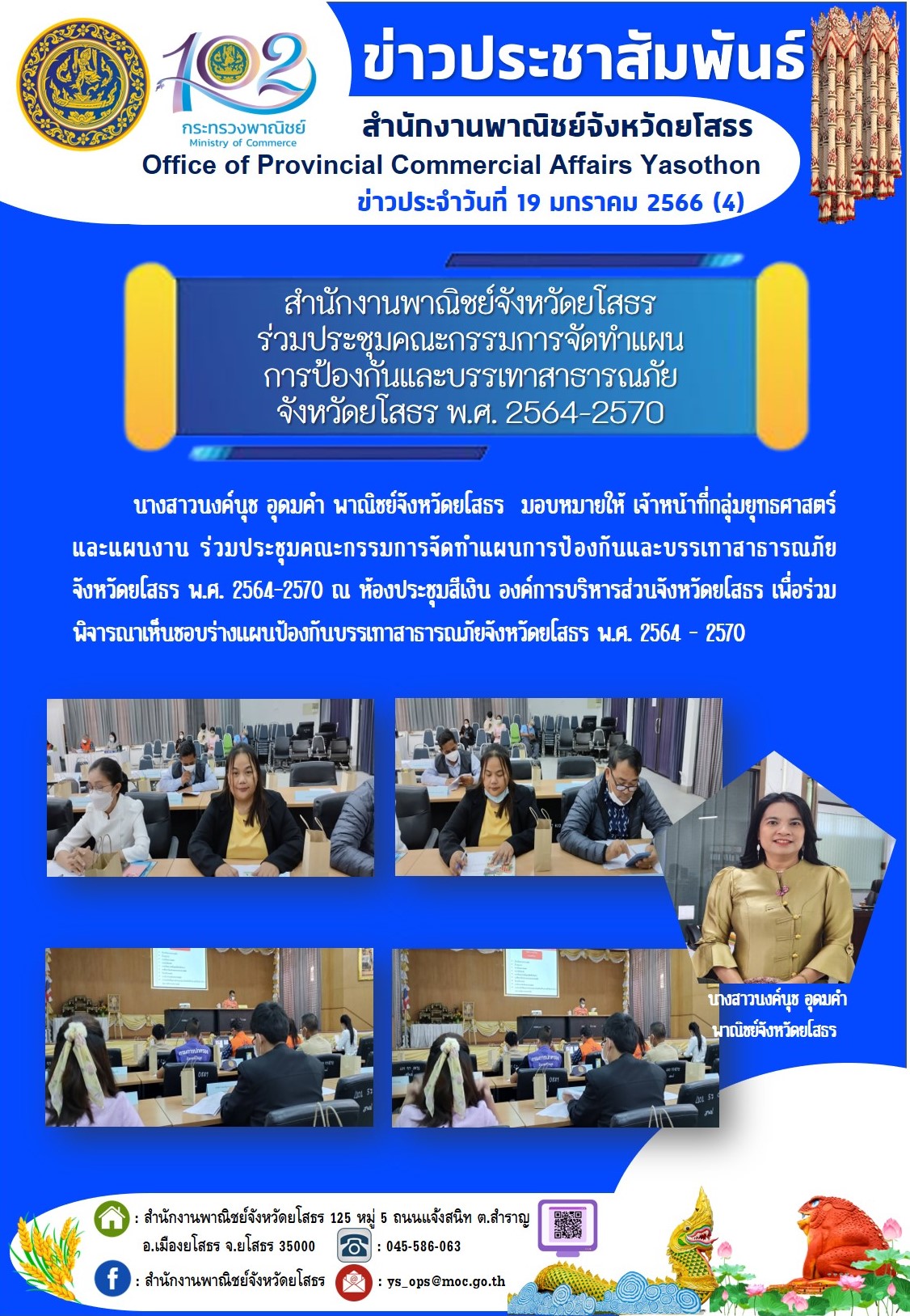 สำนักงานพาณิชย์จังหวัดยโสธร ร่วมประชุมคณะกรรมการจัดทำแผนการป้องกันและบรรเทาสาธารณภัยจังหวัดยโสธร พ.ศ. 2564-2570