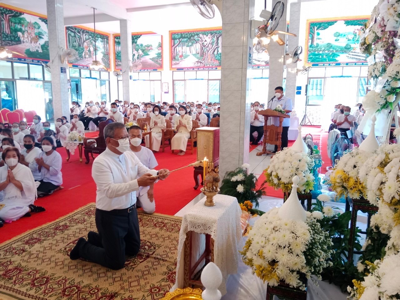 ในการนี้ นางยุพิน ภัทรกุลพงศ์ นายอำเภอคำเขื่อนแก้ว พร้อมด้วยนายบุญแก้ว สมวงศ์ สมาชิกสภาผู้แทนราษฎรจังหวัดยโสธร เขต ๒ นางสาววาสนา ไชยพรรณา วัฒนธรรมจังหวัดยโสธร หน้าส่วนราชการ ปลัดอำเภอ ผู้บริหารองค์กรปกครองส่วนท้องถิ่น ข้าราชการ พนักงาน เจ้าหน้าที่ กำนัน ผู้ใหญ่บ้าน ฯลฯ และพุทธศาสนิกชนร่วมพิธี