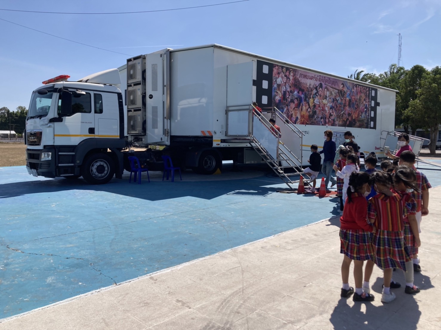 แก้ไขโดย : [อำเภอคำเขื่อนแก้ว] วันที่ 23 ม.ค. 2566 (15:38 น.)วันที่ 17 มกราคม 2566 เวลา 13.30 น. นางยุพิน ภัทรกุลพงศ์ นายอำเภอคำเขื่อนแก้ว พร้อมด้วยปลัดอำเภอ ได้ตรวจเยี่ยมโครงการรถโรงหนัง "เฉลิมทัศน์" ซึ่งเป็นรถเฉลิมพระเกียรติสมเด็จพระกนิษฐาธิราชเจ้า กรมสมเด็จพระเทพรัตนราชสุดาฯ สยามบรมราชกุมารี เนื่องในโอกาสทรงเจริญพระชนมายุครบ 5 รอบ จัดโดยหอภาพยนตร์ (องค์การมหาชน) ร่วมกับที่ทำการปกครองอำเภอคำเขื่อนแก้ว และสำนักงานวัฒนธรรมจังหวัดยโสธร โดยมีวัตถุประสงค์เพื่อจัดฉายภาพยนตร์เพื่อการเรียนรู้แก่เด็กนักเรียนและประชาชนตามโรงเรียนและชุมชนที่ห่างไกลจากโรงภาพยนตร์
