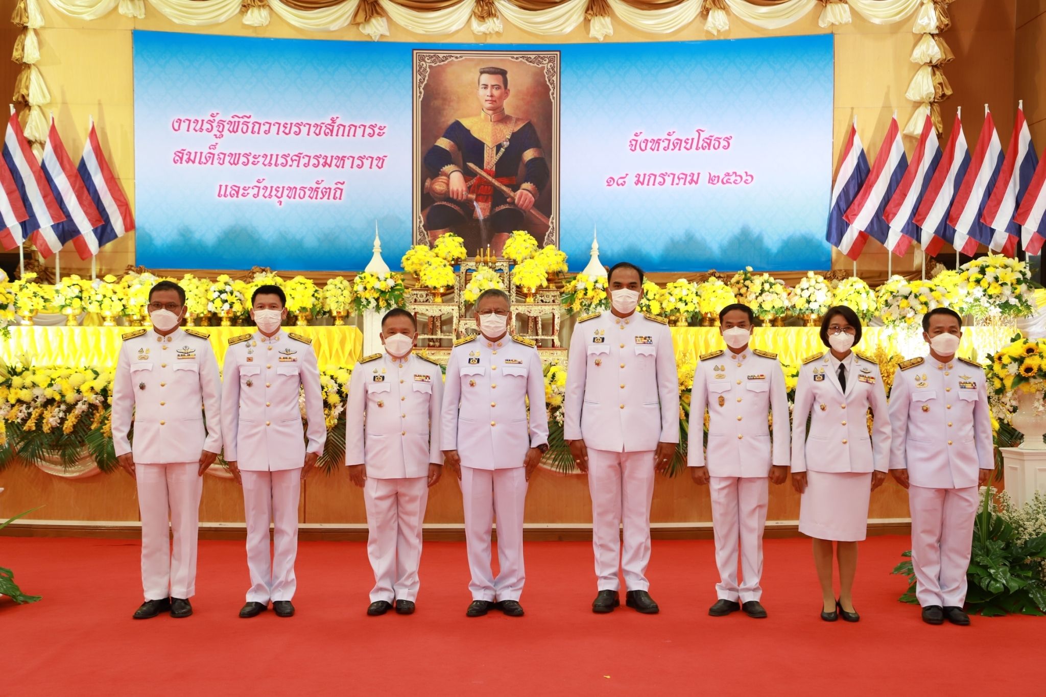 วันที่ ๑๘ มกราคม ๒๕๖๖ พิธีถวายราชสักการะสมเด็จพระนเรศวรมหาราช และวันยุทธหัตถี และวางพานพุ่มดอกไม้ถวายราชสักการะ เพื่อน้อมรำลึกในพระมหากรุณาธิคุณ ณ หอประชุมวิถีอีสาน ศาลากลางจังหวัดยโสธร