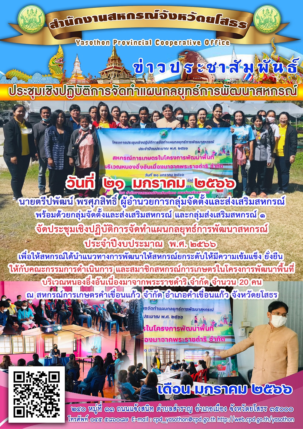 ผู้โพสต์ : [สำนักงานสหกรณ์จังหวัดยโสธร] ทั่วไป