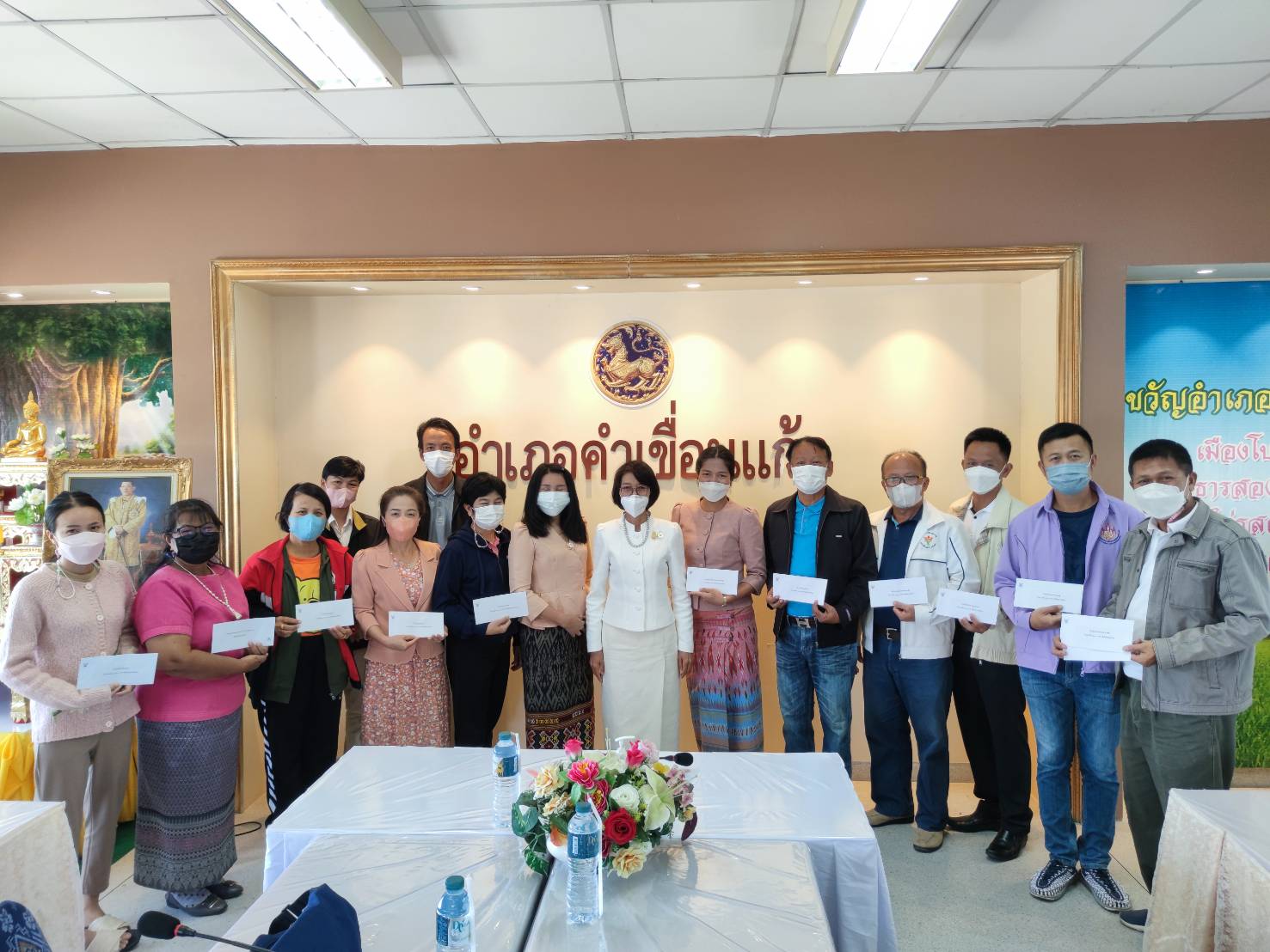 วันเสาร์ที่ ๒๘ มกราคม ๒๕๖๖ มอบเงินสนับสนุนให้กับโรงเรียนในเขตพื้นที่อำเภอคำเขื่อนแก้ว จังหวัดยโสธร ที่จะเดินทางไปร่วมแข่งขันศิลปหัตถกรรมนักเรียน ภาคตะวันออกเฉียงเหนือ ครั้งที่ ๗๐ ปีการศึกษา ๒๕๖๕ จังหวัดร้อยเอ็ด จำนวน ๒๐ แห่ง