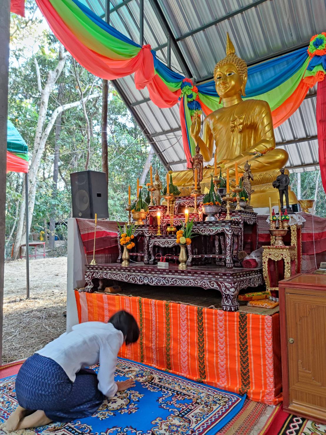 นางยุพิน ภัทรกุลพงศ์ นายอำเภอคำเขื่อนแก้ว ประธานฝ่ายฆราวาส ในพิธีเจริญพระพุทธมนต์เฉลิมพระเกียรติถวายพระพรชัยมงคล พระบาทสมเด็จพระเจ้าอยู่หัว สมเด็จพระนางเจ้าฯ พระบรมราชินี สมเด็จพระเจ้าลูกเธอ เจ้าฟ้าพัชรกิติยาภา นเรนทิราเทพยวดี กรมหลวงราชสาริณีสิริพัชร มหาวัชรราชธิดา ณ ลานปฏิบัติธรรมวัดเก่าหนองสิม สาขาวัดนาเวียง ตำบลกู่จาน อำเภอคำเขื่อนแก้ว จังหวัดยโสธร
