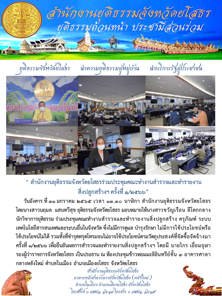 สำนักงานยุติธรรมจังหวัดยโสธรร่วมประชุมคณะทำงานสำรวจและทำรายงานสิ่งปลูกสร้างฯ ครั้งที่ 1/2566