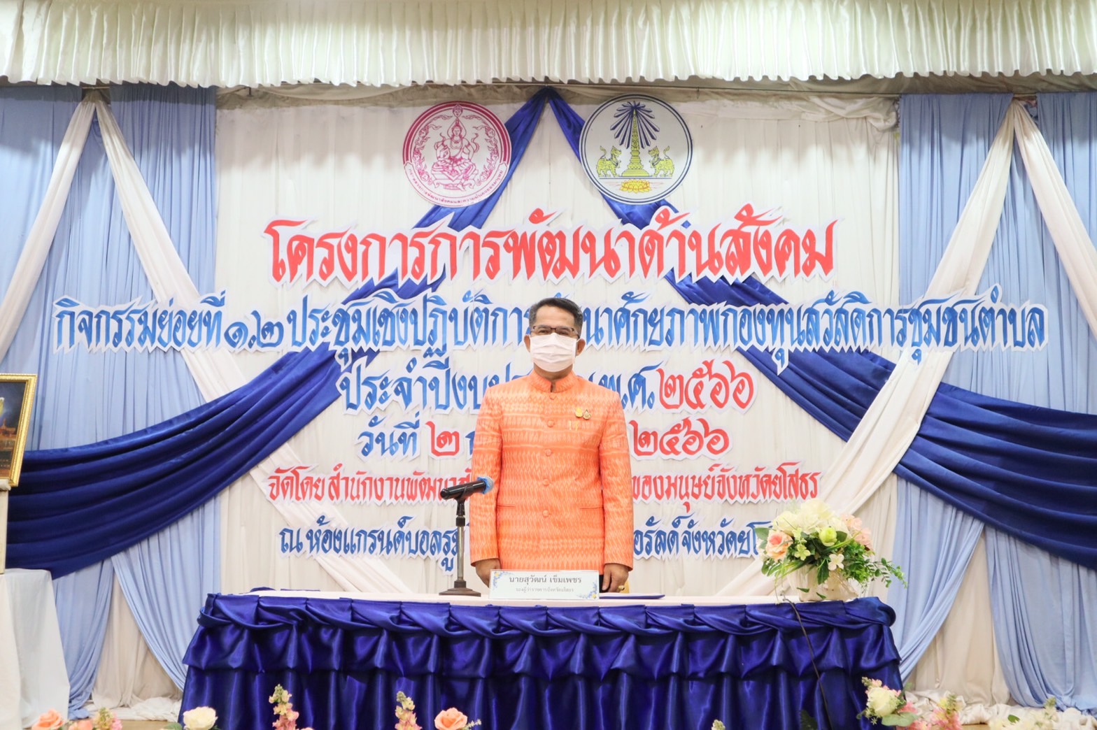 วันที่ 2 ก.พ. 2566 (15:52 น.)นางสาวนงค์นุช อุดมคำ พาณิชย์จังหวัดยโสธร ร่วมพิธีเปิดโครงการการพัฒนาด้านสังคม กิจกรรมประชุมเชิงปฏิบัติการพัฒนาศักยภาพกองทุนสวัสดิการชุมชนตำบล ปีงบประมาณ พ.ศ. 2566 จัดโดย สำนักงานพัฒนาสังคมและความมั่นคงของมนุษย์จังหวัดยโสธร