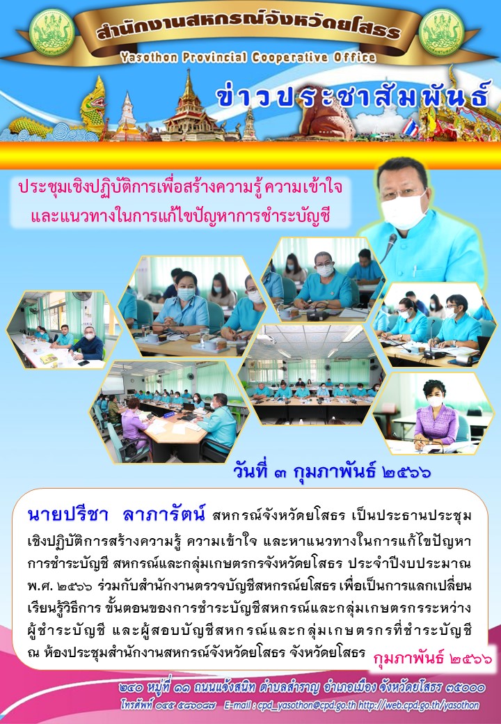 ผู้โพสต์ : [สำนักงานสหกรณ์จังหวัดยโสธร] ทั่วไป