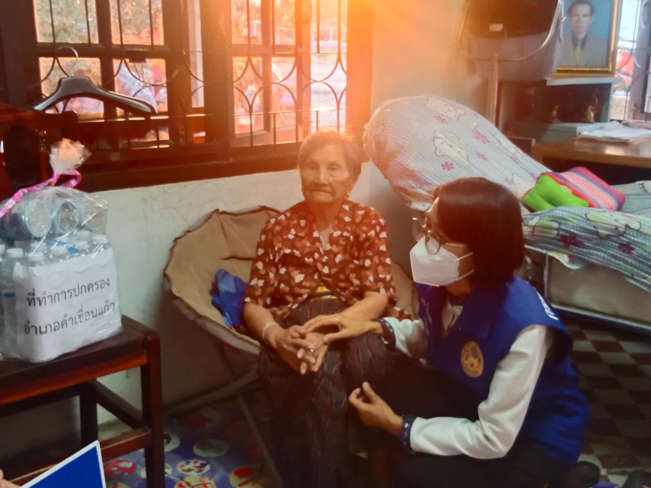 วันที่ 8 ก.พ. 2566 (09:35 น.)วันที่ ๗ กุมภาพันธ์ ๒๕๖๖ เวลา ๑๗.๓๐ น. นางยุพิน ภัทรกุลพงศ์ นายอำเภอคำเขื่อนแก้ว/นายกกิ่งกาชาดอำเภอคำเขื่อนแก้ว/คณะทำงานแม่บ้านมหาดไทยจังหวัดยโสธร พร้อมด้วย พัฒนาการอำเภอคำเขื่อนแก้ว สมาชิกกิ่งกาชาดอำเภอคำเขื่อนแก้ว สมาชิกแม่บ้านมหาดไทยอำเภอคำเขื่อนแก้ว นักวิชาการพัฒนาชุมชน สำนักงานพัฒนาชุมชนอำเภอคำเขื่อนแก้ว ลงพื้นที่เยี่ยมให้กำลังใจและมอบสิ่งของให้แก่ผู้สูงอายุ นางย่อง พ่อค้า อายุ ๙๙ ปี อาศัยอยู่บ้านเลขที่ ๔๔๗ หมู่ที่ ๑ ตำบลลุมพุก อำเภอคำเขื่อนแก้ว จังหวัดยโสธร