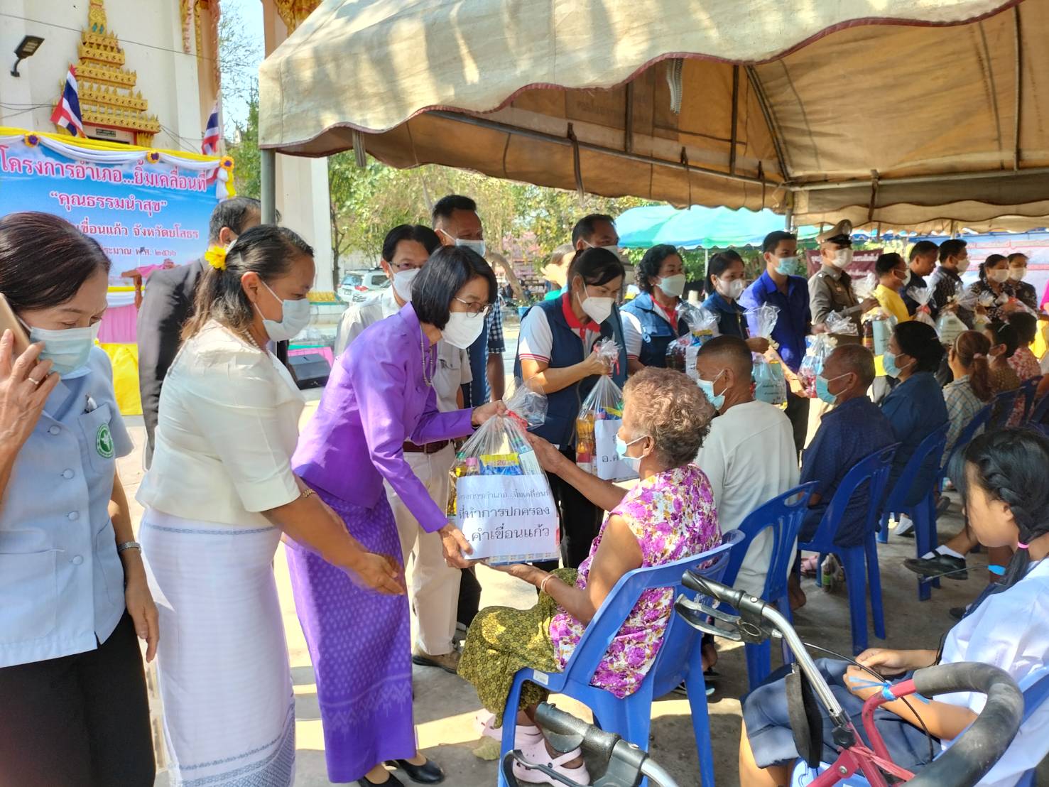 ในการนี้ นายอำเภอคำเขื่อนแก้วได้เป็นประธานเปิดกิจกรรมโครงการอำเภอยิ้มเคลื่อนที่ ประจำปีงบประมาณ พ.ศ. 2566 บูรณาการร่วมกับโครงการองค์การบริหารส่วนตำบลทุ่งมนเคลื่อนที่ โดยมีส่วนราชราชการให้บริการประชาชน ดังนี้