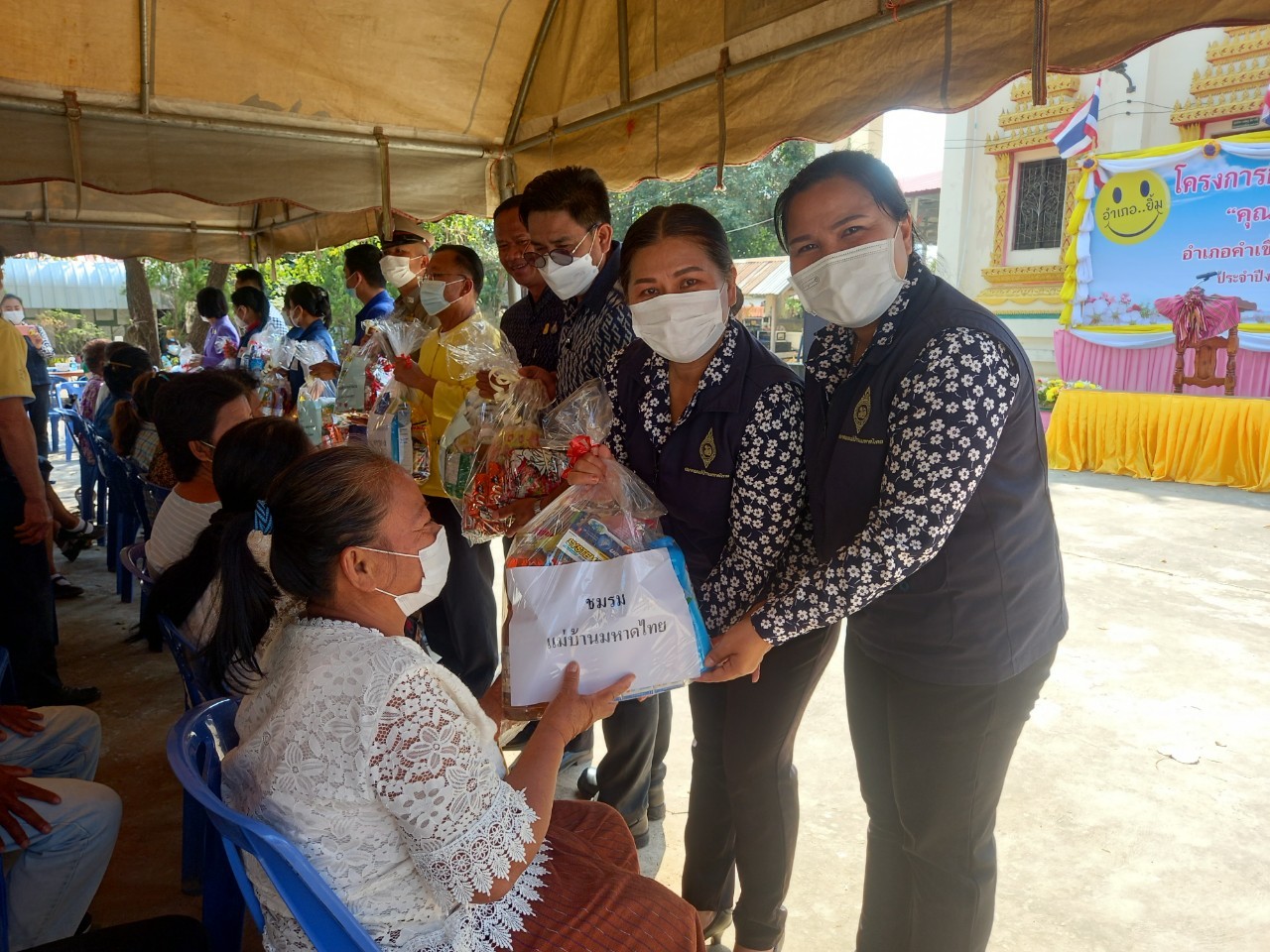 ในการนี้ ได้มอบสิ่งของให้กับผู้สูงอายุ จำนวน 10 ราย โดยที่ทำการปกครองอำเภอ/กิ่งกาชาดอำเภอ/แม่บ้านมหาดไทยอำเภอคำเขื่อนแก้ว/องค์การบริหารส่วนตำบลทุ่งมน ได้ออกตรวจเยี่ยมและมอบสิ่งของให้ผู้ป่วยติดเตียง จำนวน 3 ราย