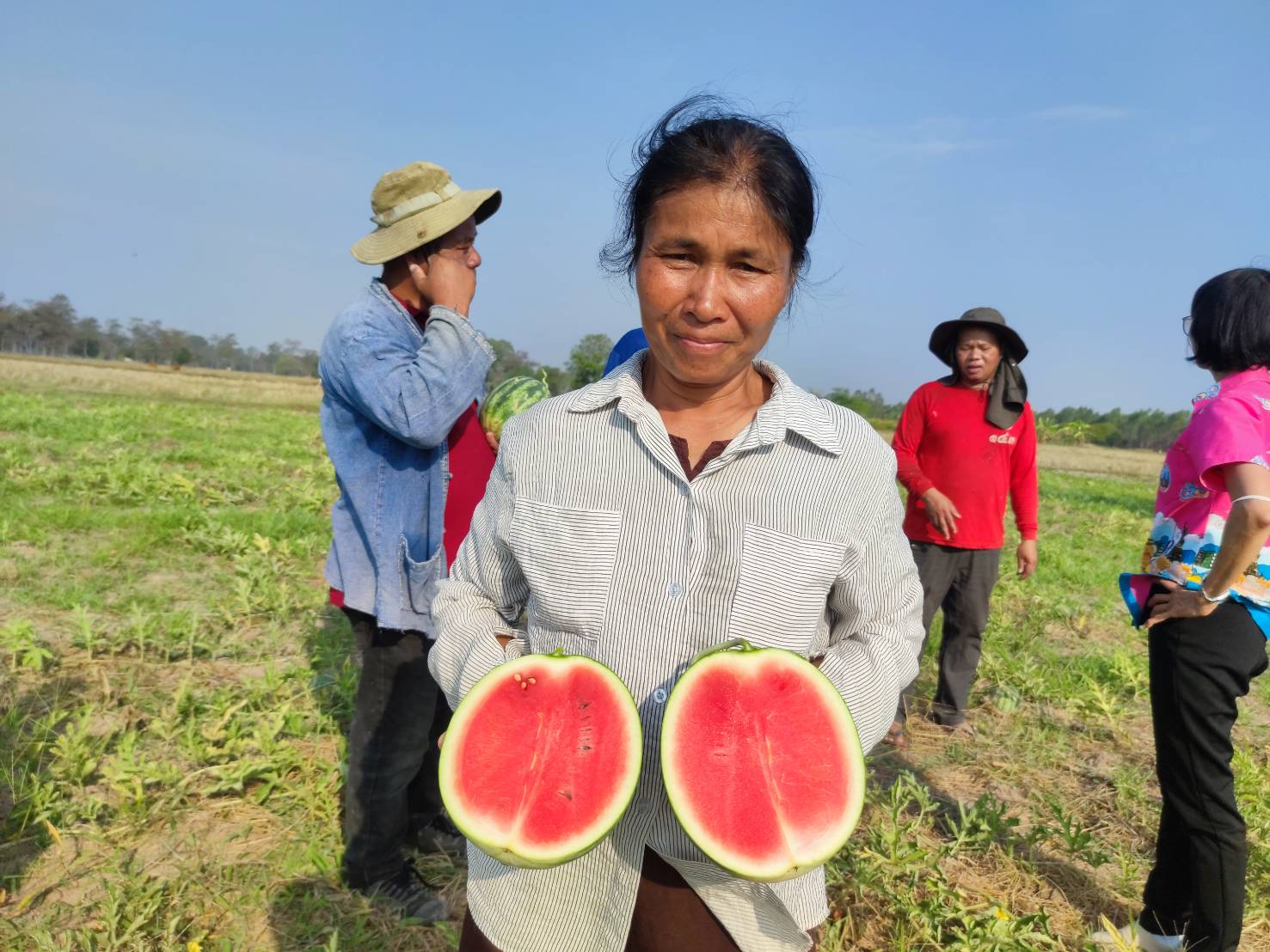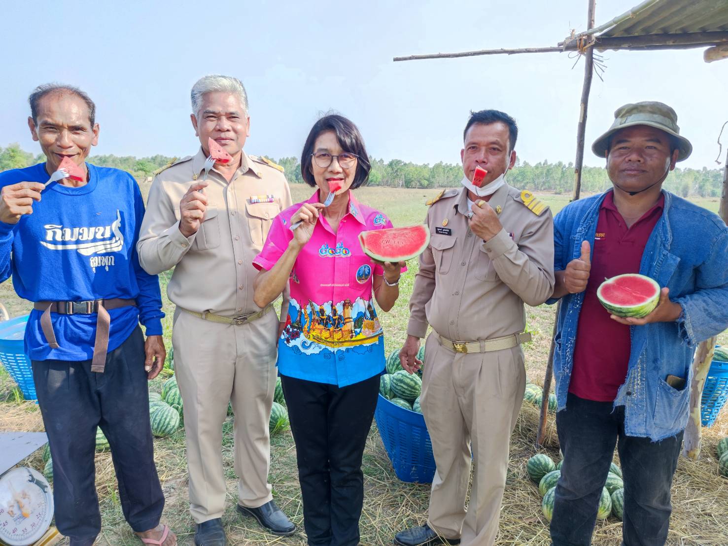 ลงพื้นที่เยี่ยมชมแปลงแตงโมอินทรีย์และช่วยอุดหนุนซื้อแตงโมอินทรีย์ ณ แปลงปลูกแตงโม พ่อแท่ง - แม่แตน องอาจ บ้านเหล่ามะเขียว หมู่ที่ ๔ ตำบลกุดกุง อำเภอคำเขื่อนแก้ว จังหวัดยโสธร