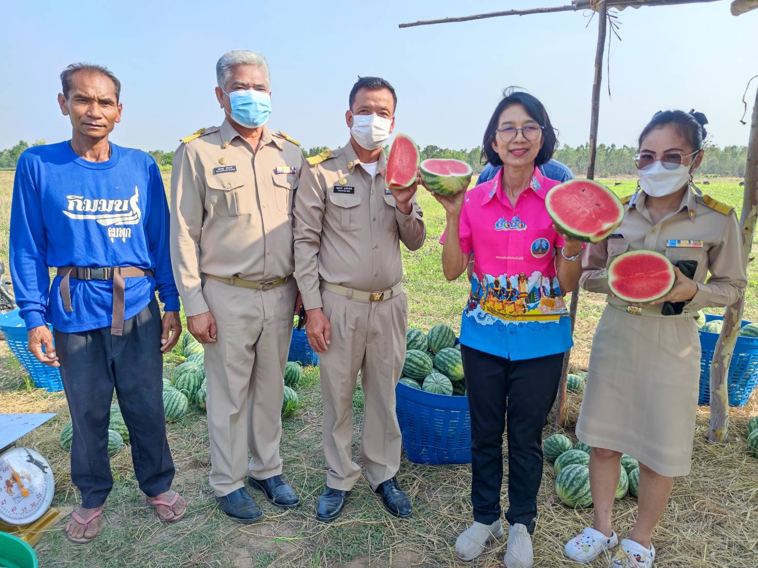 วันที่ 14 ก.พ. 2566 (15:27 น.)- วันที่ ๑๓ กุมภาพันธ์ ๒๕๖๖ เวลา ๐๘.๐๐ น. นางยุพิน ภัทรกุลพงศ์ นายอำเภอคำเขื่อนแก้ว ลงพื้นที่เยี่ยมชมแปลงแตงโมอินทรีย์และช่วยอุดหนุนซื้อแตงโมอินทรีย์ ณ แปลงปลูกแตงโม พ่อแท่ง - แม่แตน องอาจ บ้านเหล่ามะเขียว หมู่ที่ ๔ ตำบลกุดกุง อำเภอคำเขื่อนแก้ว จังหวัดยโสธร เป็นเงินจำนวน ๔,๓๘๐ บาท โดยมี คณะผู้บริหารองค์การบริหารส่วนตำบลกุดกุง ผู้ใหญ่บ้าน ผู้ช่วยผู้ใหญ่บ้าน ร่วมเยี่ยมชมแปลงแตงโมอินทรีย์ และช่วยอุดหนุนแตงโมอินทรีย์เพื่อการประชาสัมพันธ์ผลผลิตในครั้งนี้
