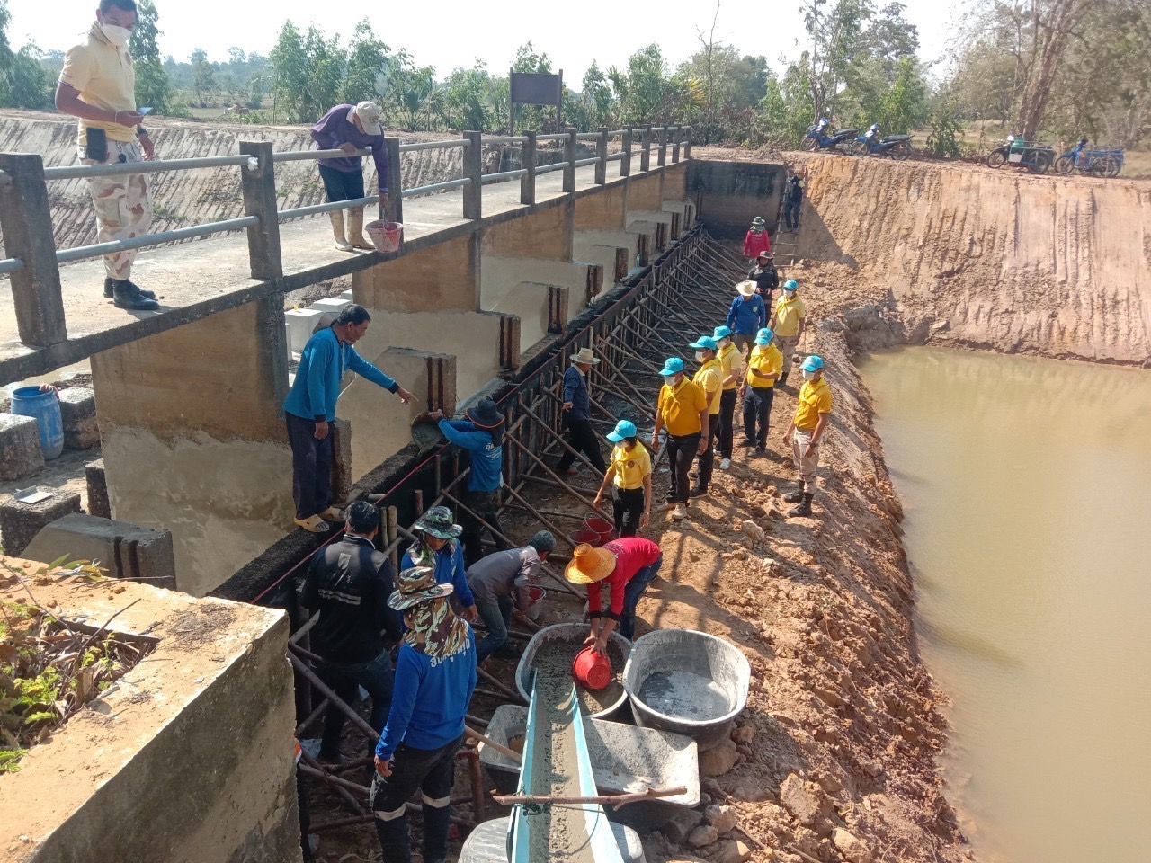 5. รายละเอียด : นางยุพิน ภัทรกุลพงศ์ นายอำเภอคำเขื่อนแก้ว / ผอ.ศอ.จอส.พระราชทาน อำเภอคำเขื่อนแก้ว จังหวัดยโสธร นำจิตอาสาพระราชทานในพื้นที่ทำกิจกรรมจิตอาสาซ่อมแซมฝายน้ำล้นห้วยเขมร ตามโครงการซ่อมแซมเสริมศักยภาพแหล่งน้ำขนาดเล็ก ประจำปีงบประมาณ พ.ศ. 2566 โดยมี ร.ต.บุญรอด สุขทาษ ผู้แทน รอง ผอ.รมน.จังหวัดยโสธร (ฝ่ายทหาร) นายบัญชา ชารีแก้ว นายกองค์การบริหารส่วนตำบลลุมพุก ปลัดอำเภอ เจ้าหน้าที่ปกครอง สมาชิกกองอาสารักษาดินแดน ผู้ใหญ่บ้าน ชาวบ้านโนนยาง หมู่ที่ 6 ตำบลลุมพุก และจิตอาสาพระราชทานร่วมทำกิจกรรมจิตอาสาอย่างพร้อมเพรียง ทั้งนี้ โครงการดังกล่าวดำเนินการโดย สถาบันส่งเสริมและพัฒนากิจกรรมปิดทองหลังพระ สืบสานแนวพระราชดำริ ที่ทำการปกครองอำเภอคำเขื่อนแก้ว และองค์การบริหารส่วนตำบลลุมพุก โดยได้รับงบประมาณจากกรมทรัพยากรน้ำ จำนวน 213,675 บาท