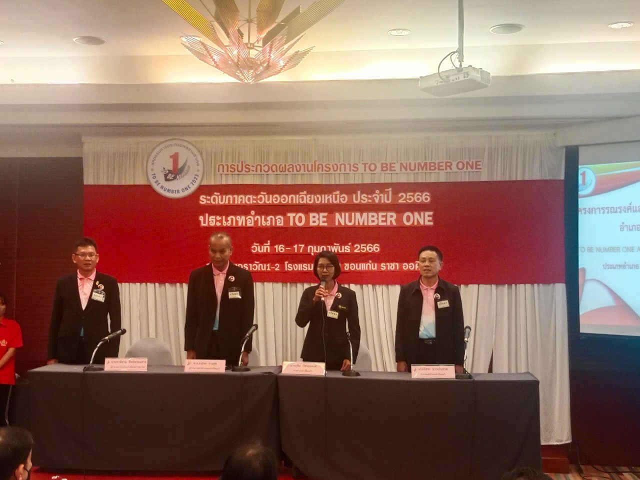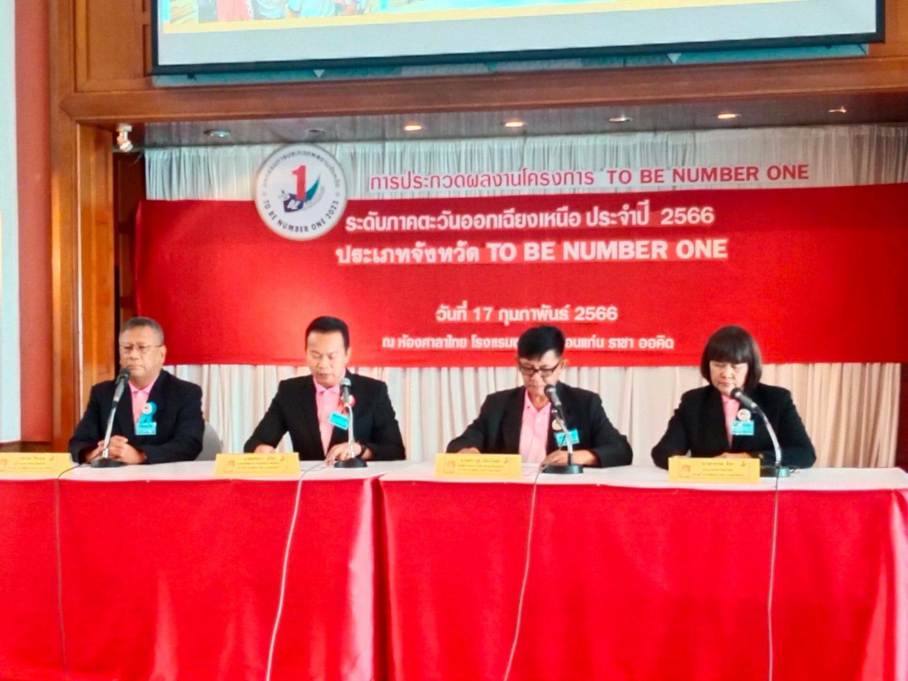 ๑๗ กุมภาพันธ์ ๒๕๖๖ ประกวดนำเสนอผลการดำเนินงานจังหวัด TO BE NUMBER ONE อำเภอ TO BE NUMBER ONE ระดับภาคตะวันออกเฉียงเหนือ ระหว่างวันที่ ๑๖ - ๑๗ กุมภาพันธ์ ๒๕๖๖ ณ โรงแรมพูลแมน ขอนแก่น ราชาออคิด อำเภอเมืองขอนแก่น จังหวัดขอนแก่น