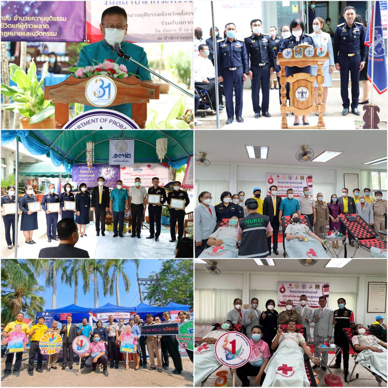 สำนักงานคุมประพฤติจังหวัดยโสธร และสำนักงานยุติธรรมจังหวัดยโสธรบูรณาการกับหน่วยงานในสังกัดกระทรวงยุติธรรมและอาสาสมัครคุมประพฤติ และภาคีเครือข่าย จัดกิจกรรมอาสาทำความดีบริจาคโลหิต เนื่องในวันสถาปนา กรมคุมประพฤติ ครบรอบ ๓๑ ปี และสัปดาห์วันสถาปนา กระทรวง