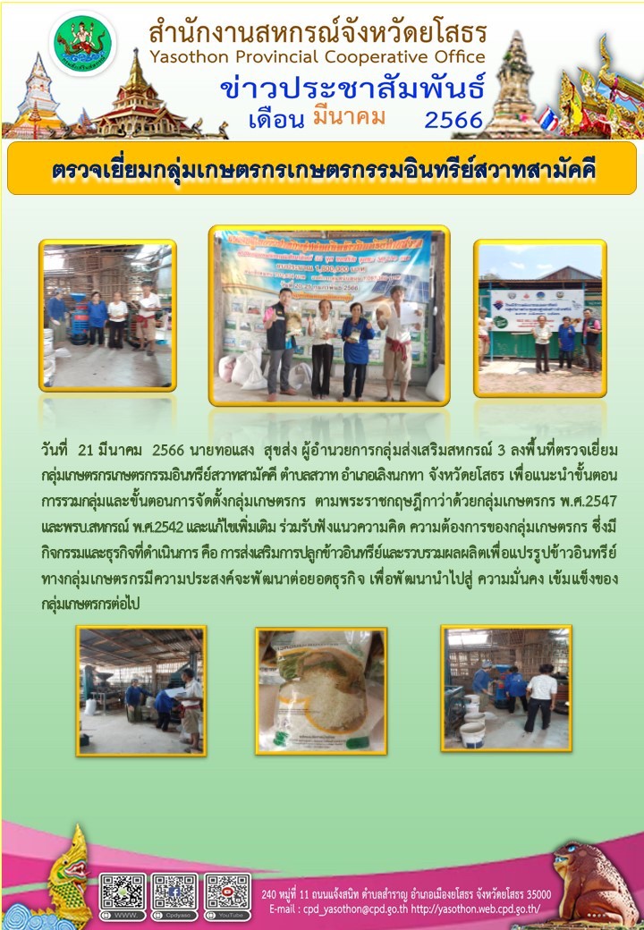ผู้โพสต์ : [สำนักงานสหกรณ์จังหวัดยโสธร] ทั่วไป