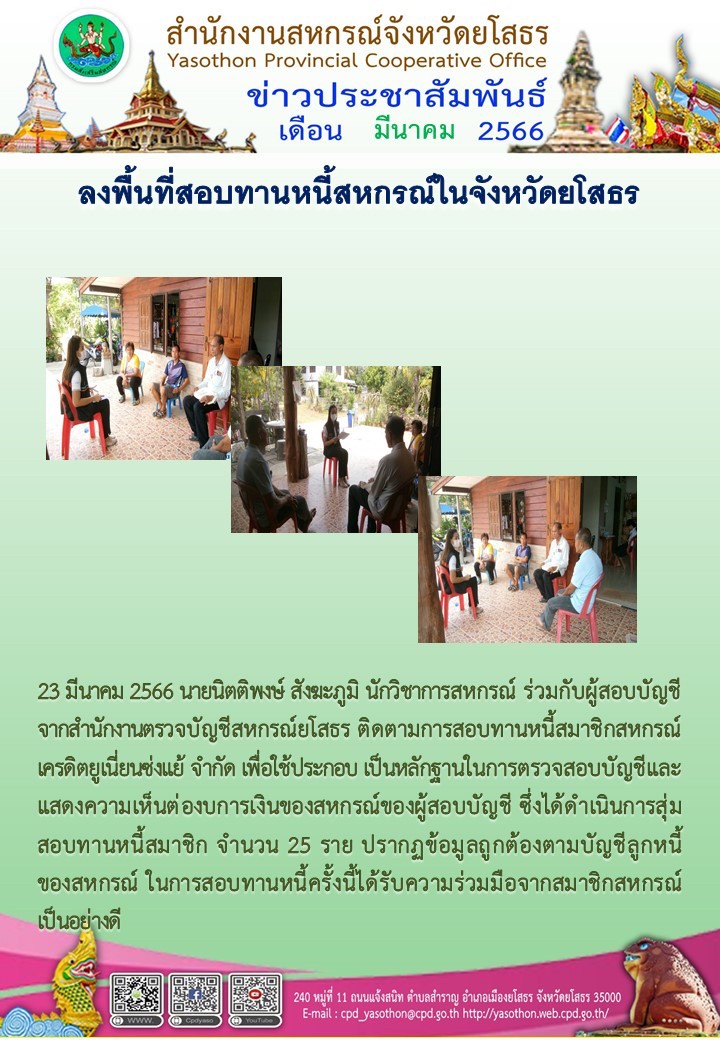 เจ้าหน้าที่สำนักงานสหกรณ์จังหวัดยโสธร ร่วมกับผู้สอบบัญชีจากสำนักงานสหกรณ์ยโสธร ติดตามการสอบทานหนี้สมาชิกสหกรณ์เครดิตยูเนี่ยนซ่งแย้ จำกัด