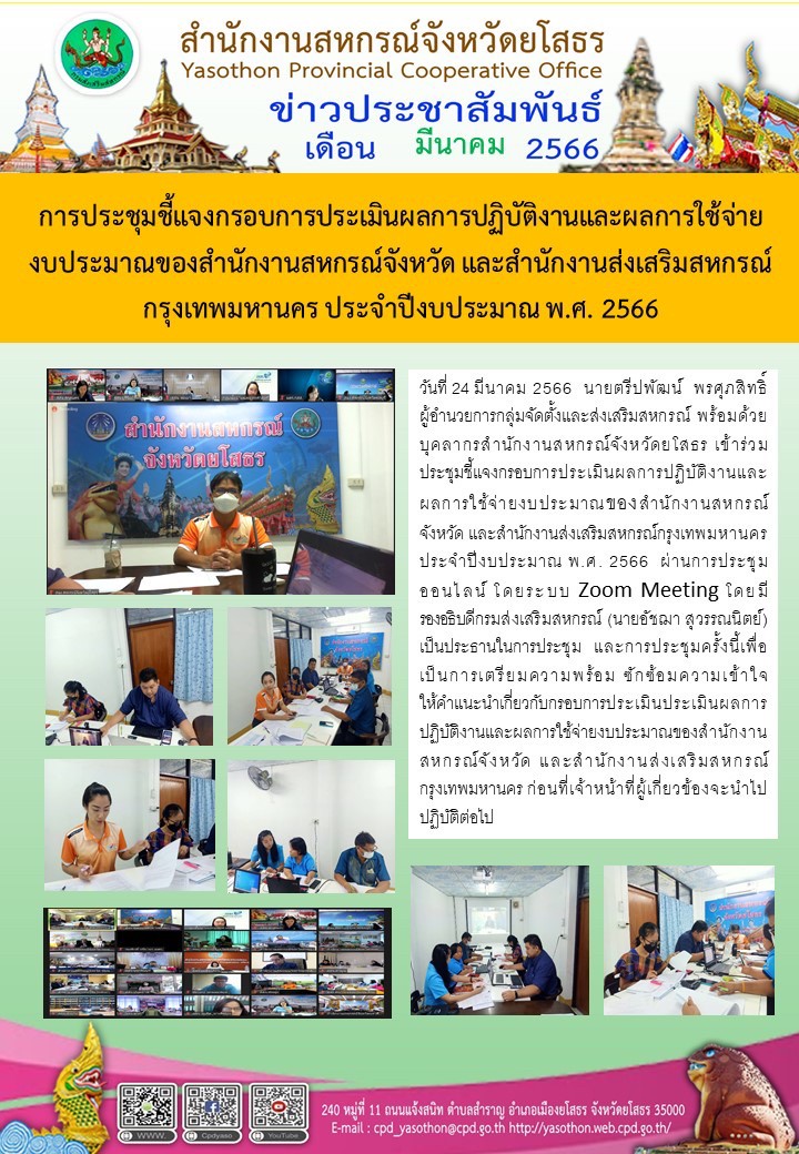 เจ้าหน้าที่สำนักงานสหกรณ์จังหวัดยโสธร ร่วมประชุมชี้แจงกรอบการประเมินผลการปฏิบัติงานและผลการใช้จ่ายงบประมาณของสำนักงานสหกรณ์จังหวัด ณ ห้องประชุมก่องข้าวน้อย สำนักงานสหกรณ์จังหวัดยโสธร
