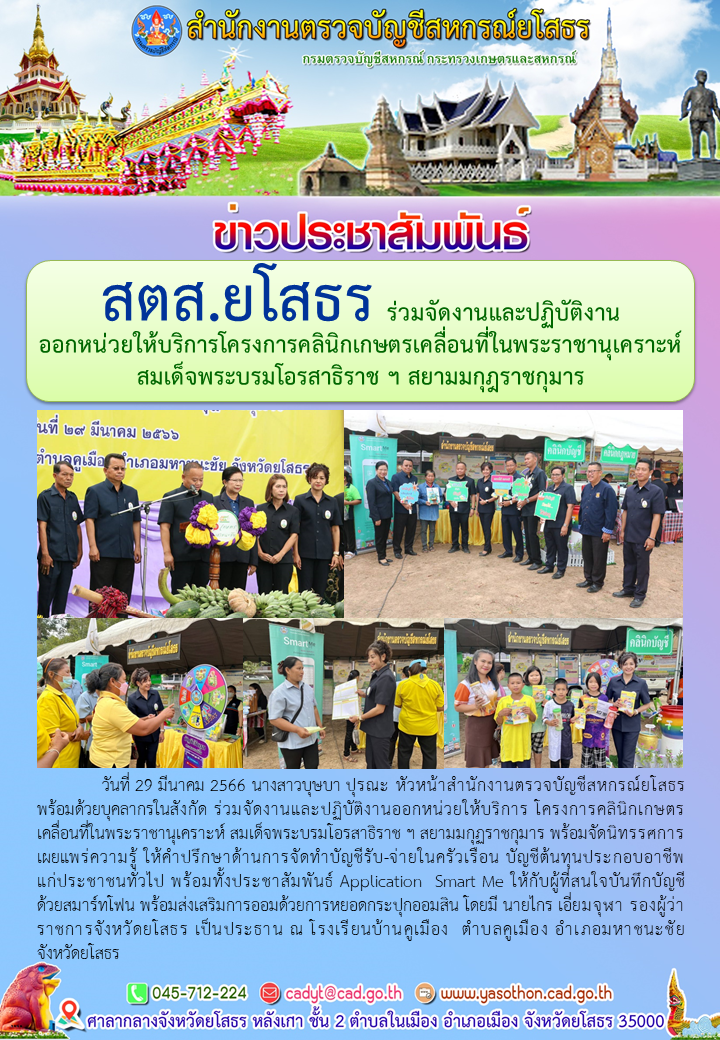 สตส.ยโสธร ร่วมจัดงานและปฏิบัติงานออกหน่วยให้บริการโครงการคลินิกเกษตรเคลื่อนที่ในพระราชานุเคราะห์ สมเด็จพระบรมโอรสาธิราช ฯ สยามมกุฎราชกุมาร