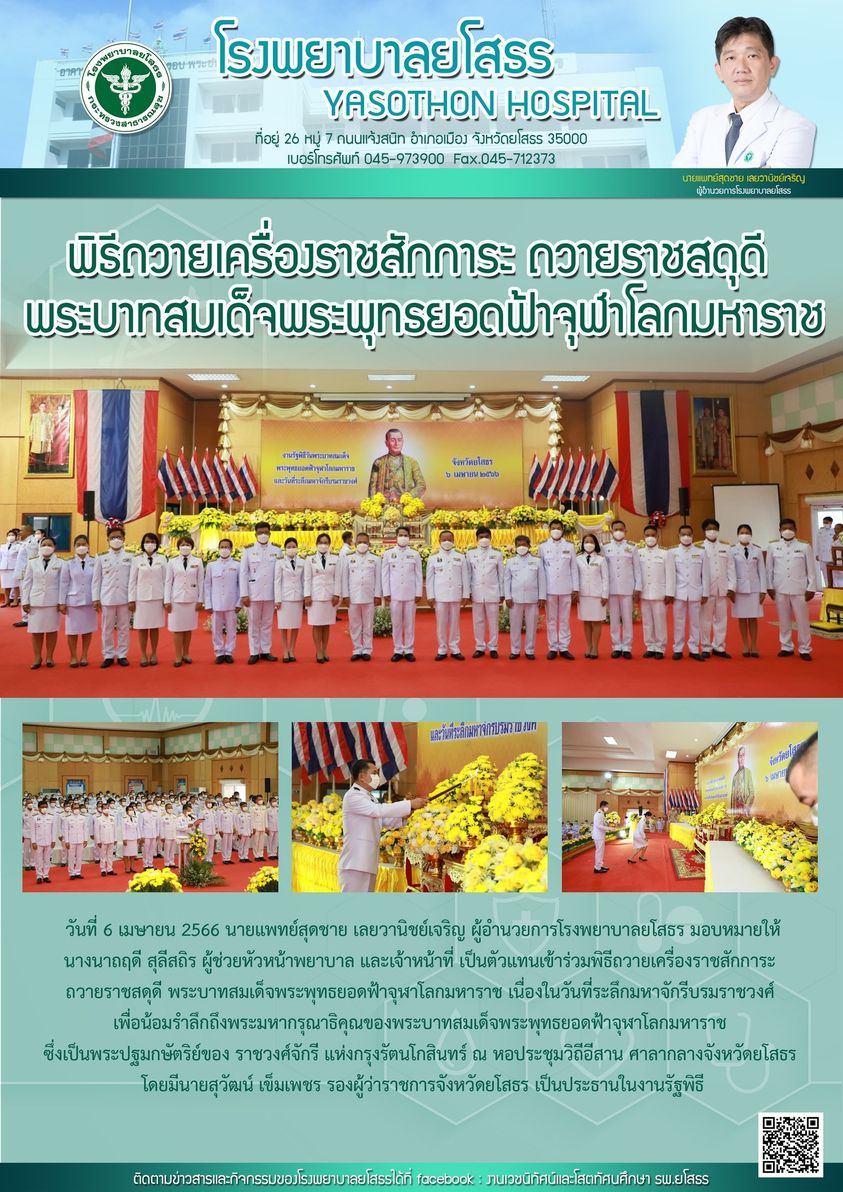 รพ.ยโสธร เข้าร่วมพิธีถวายเครื่องราชสักการะ ถวายราชสดุดี พระบาทสมเด็จพระพุทธยอดฟ้าจุฬาโลกมหาราช