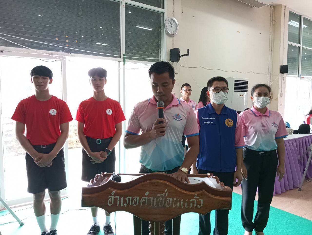 นายอำเภอคำเขื่อนแก้ว เป็นประธานในพิธี และนายชัยนเรศ ยอดแตง ปลัดอำเภอหัวหน้ากลุ่มงานบริหารงานปกครอง กล่าวรายงานวัตถุประสงค์