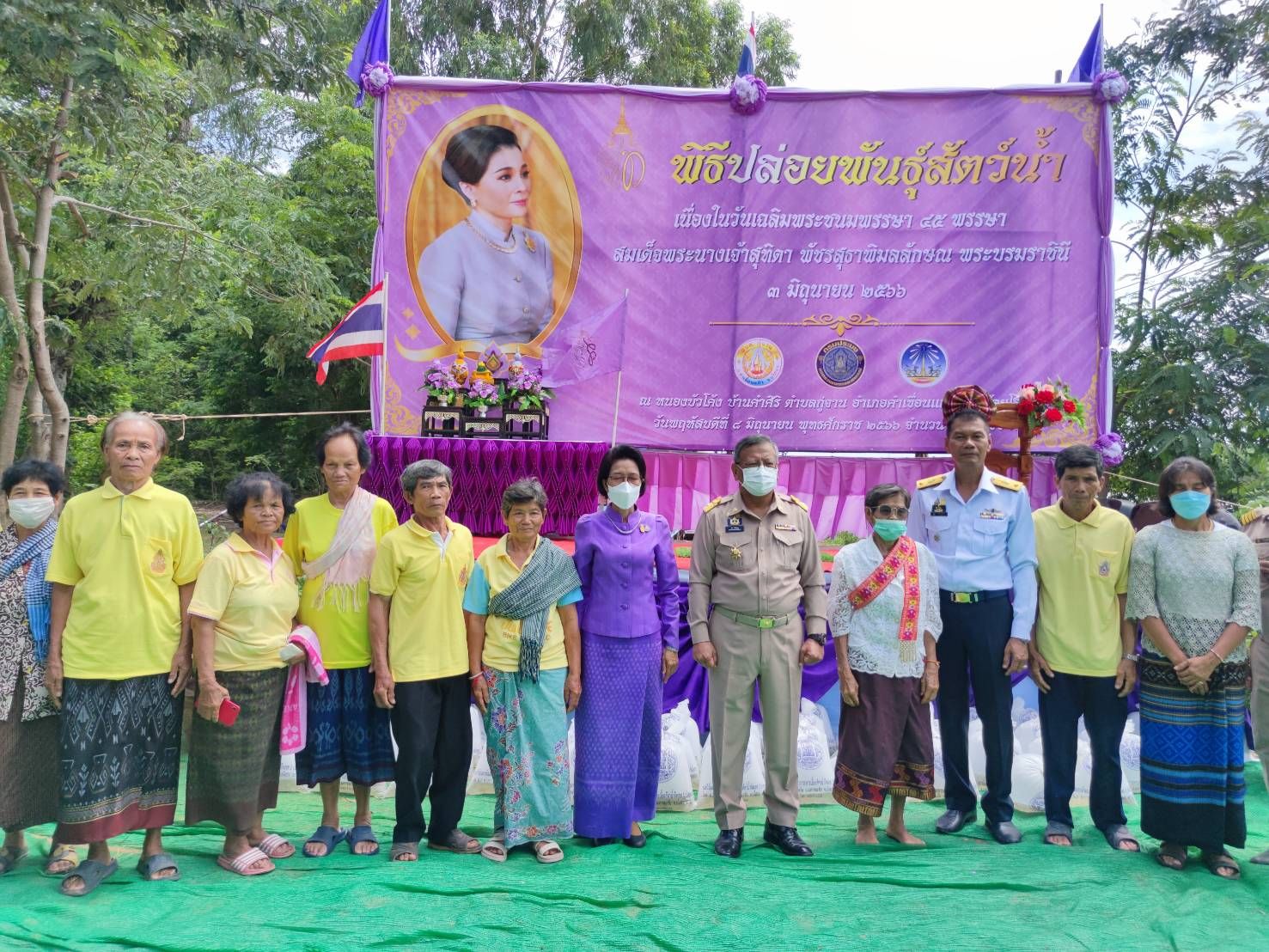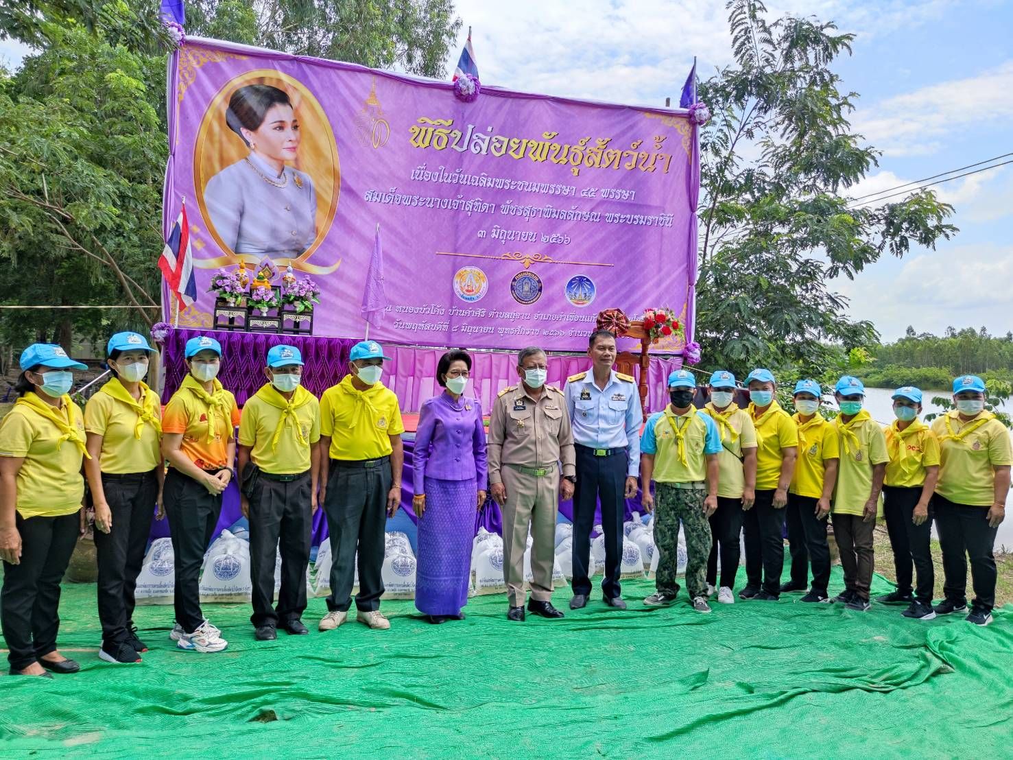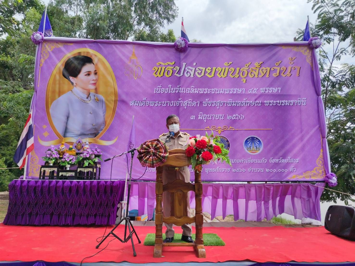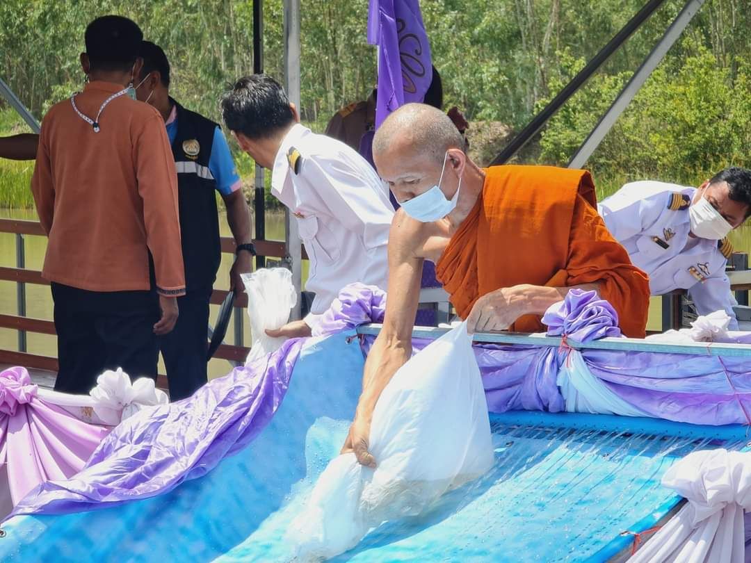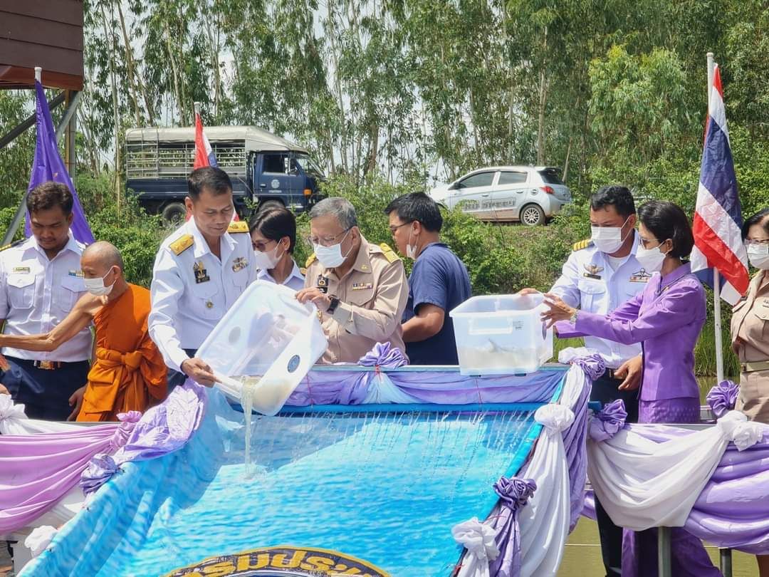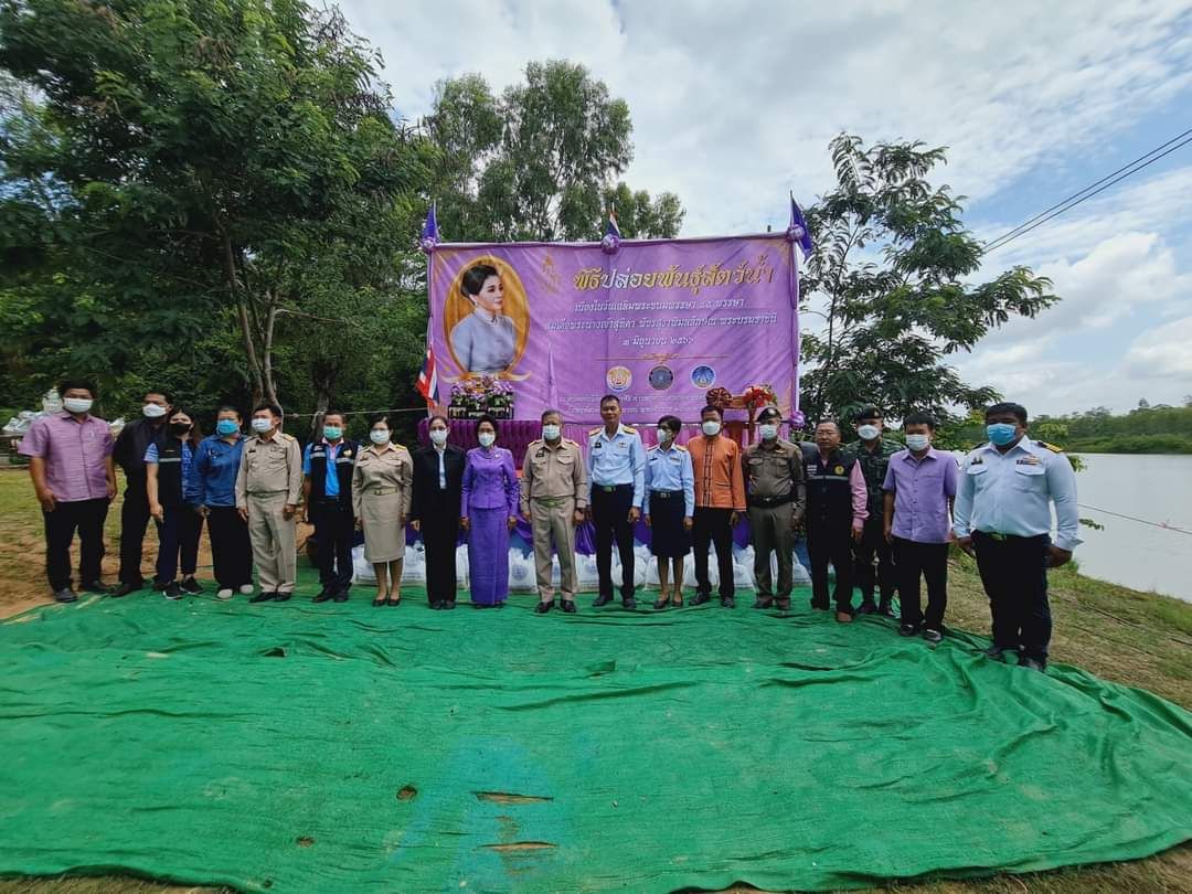 พิธีปล่อยพันธุ์สัตว์น้ำปลาตะเพียนขาว ปลาไน และปลายี่สกเทศ จำนวน ๒๐๐,๐๔๖ ตัว เฉลิมพระชนมพรรษา สมเด็จพระนางเจ้าสุทิดา พัชรสุธาพิมลลักษณ พระบรมราชินี ณ หนองบัวโค้ง หมู่ที่ 7 บ้านคำศิริ ตำบลกู่จาน อำเภอคำเขื่อนแก้ว จังหวัดยโสธร