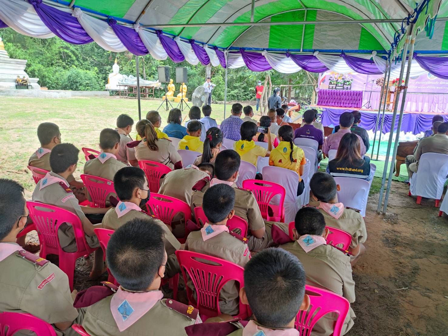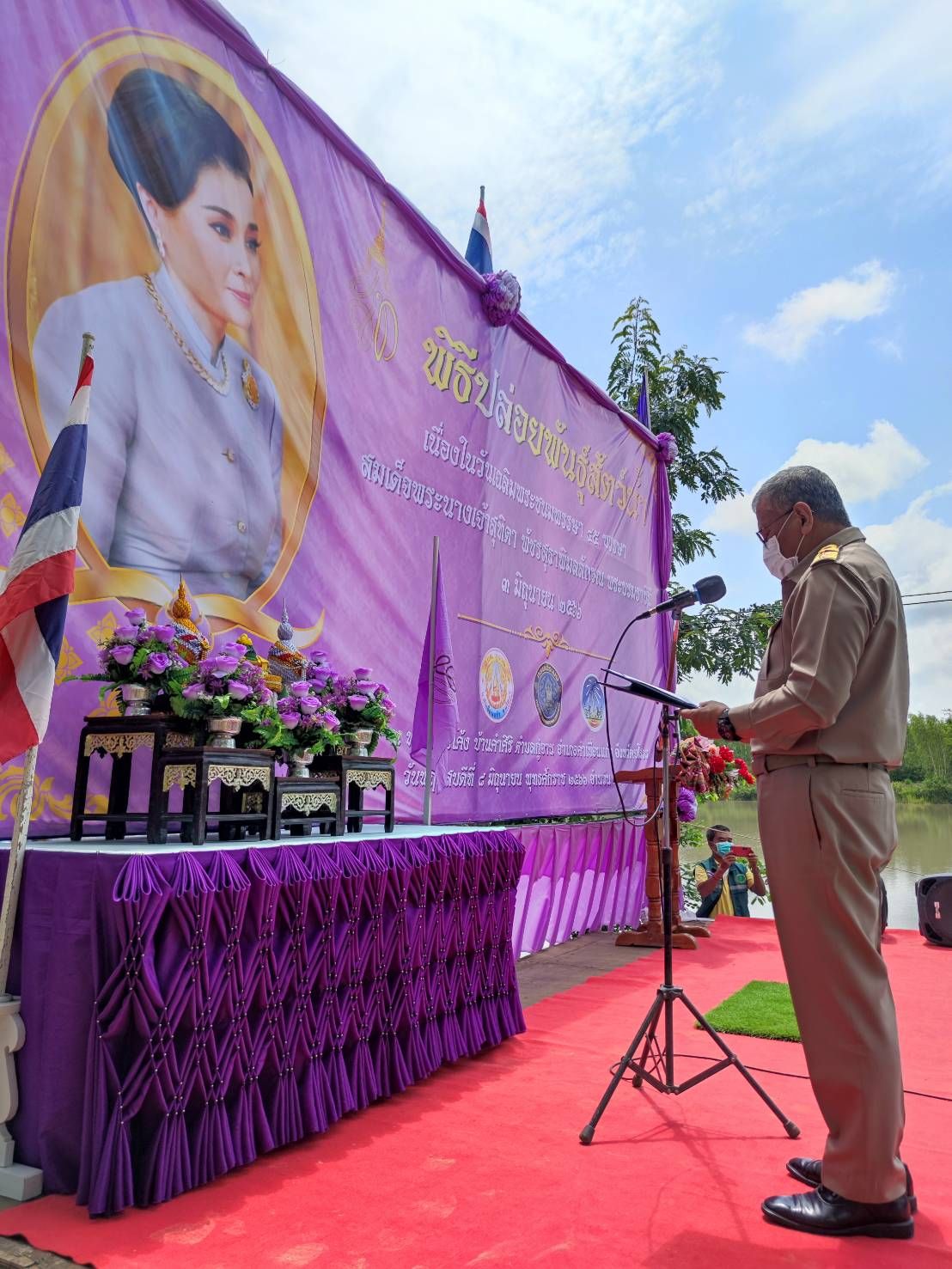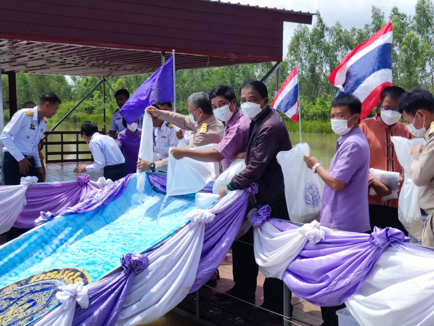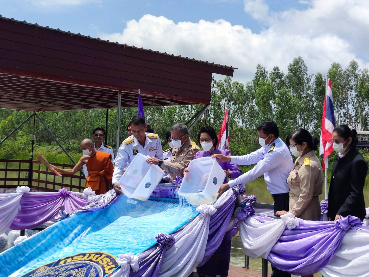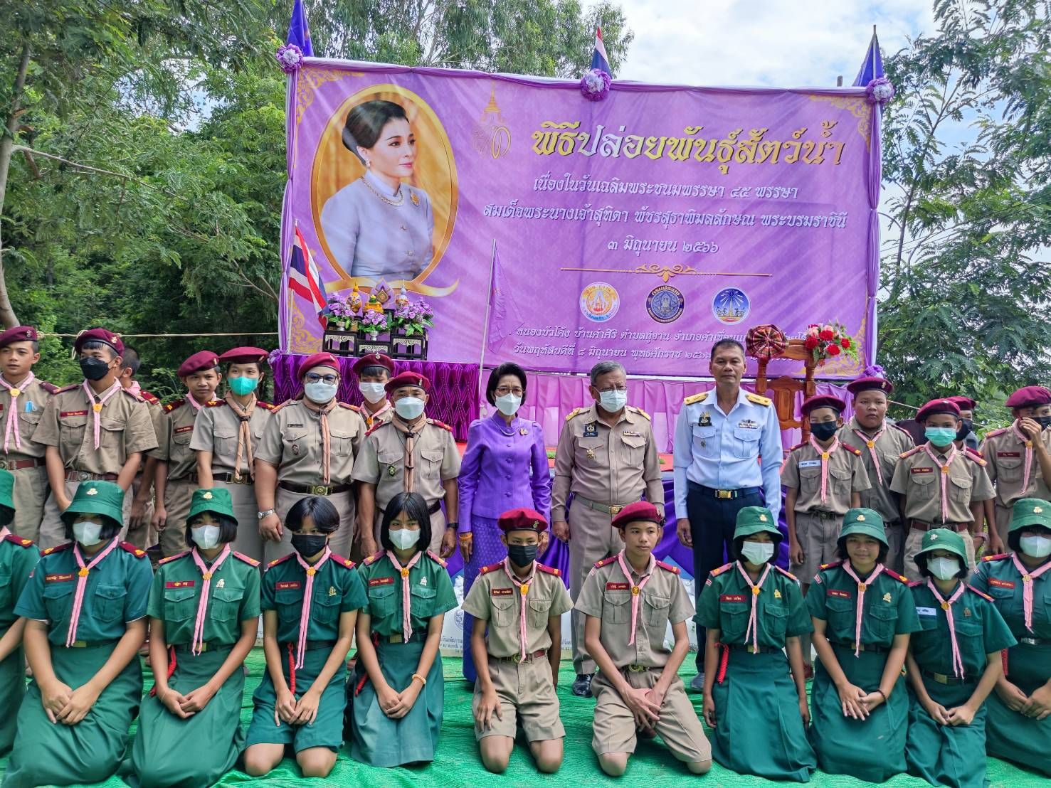 พิธีปล่อยพันธุ์สัตว์น้ำปลาตะเพียนขาว ปลาไน และปลายี่สกเทศ จำนวน ๒๐๐,๐๔๖ ตัว เฉลิมพระชนมพรรษา สมเด็จพระนางเจ้าสุทิดา พัชรสุธาพิมลลักษณ พระบรมราชินี ณ หนองบัวโค้ง หมู่ที่ 7 บ้านคำศิริ ตำบลกู่จาน อำเภอคำเขื่อนแก้ว จังหวัดยโสธร