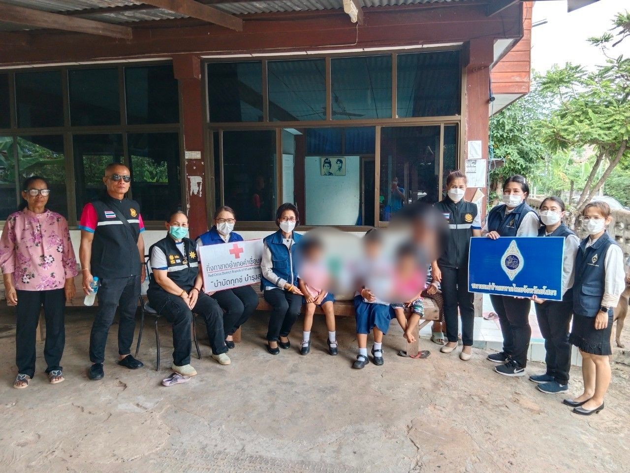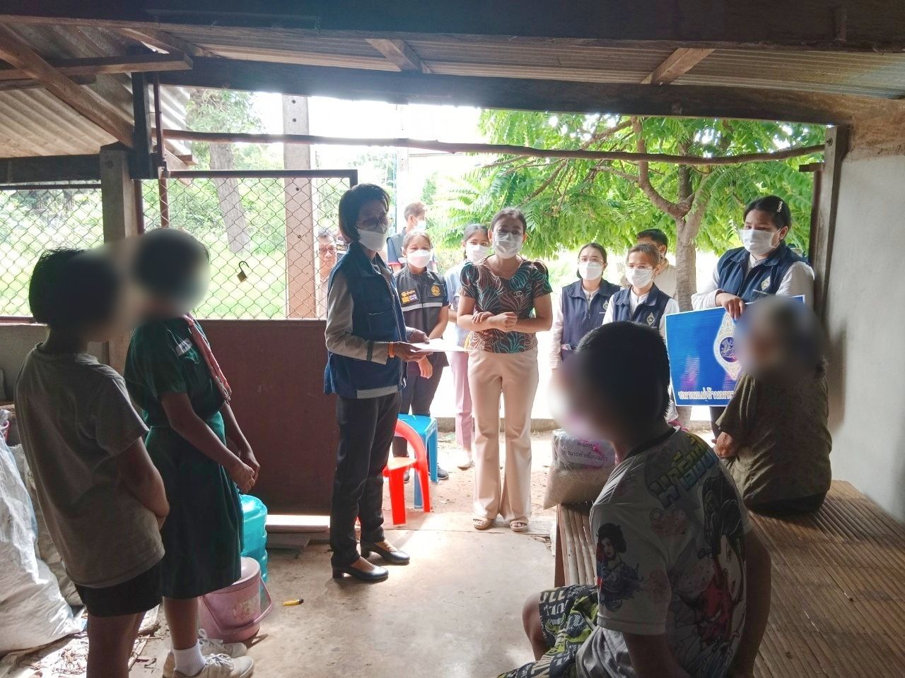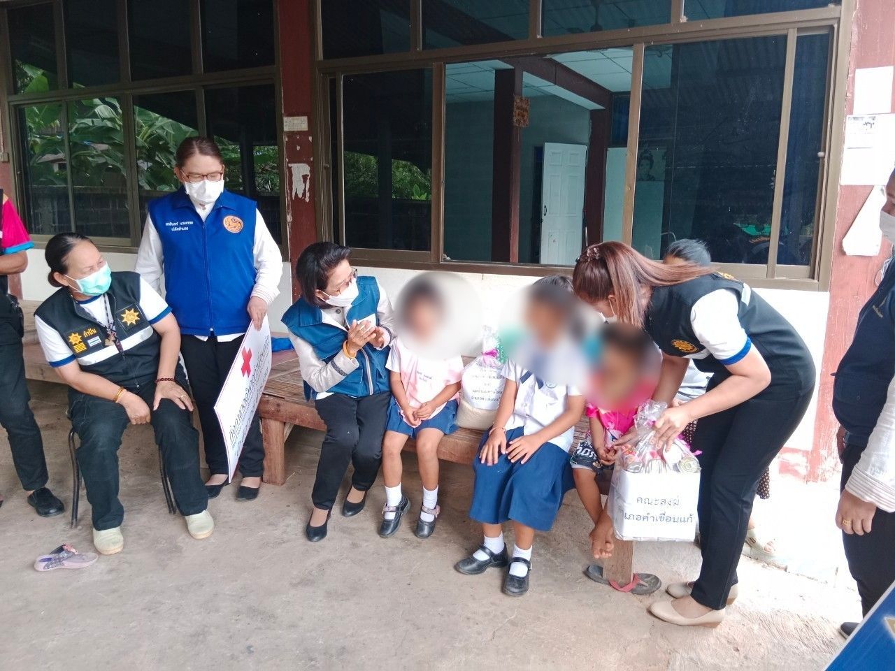 โดยมี ผอ.โรงเรียน ผอ.รพ.สต. กำนัน ผู้ใหญ่บ้าน อสม.ฯลฯ ในพื้นที่ร่วมเยี่ยมให้กำลังใจและอำนวยความสะดวกในครั้งนี้