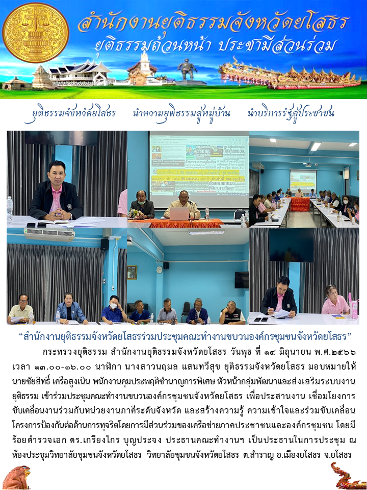 สำนักงานยุติธรรมจังหวัดยโสธรร่วมประชุมคณะทำงานขบวนองค์กรชุมชนจังหวัดยโสธร