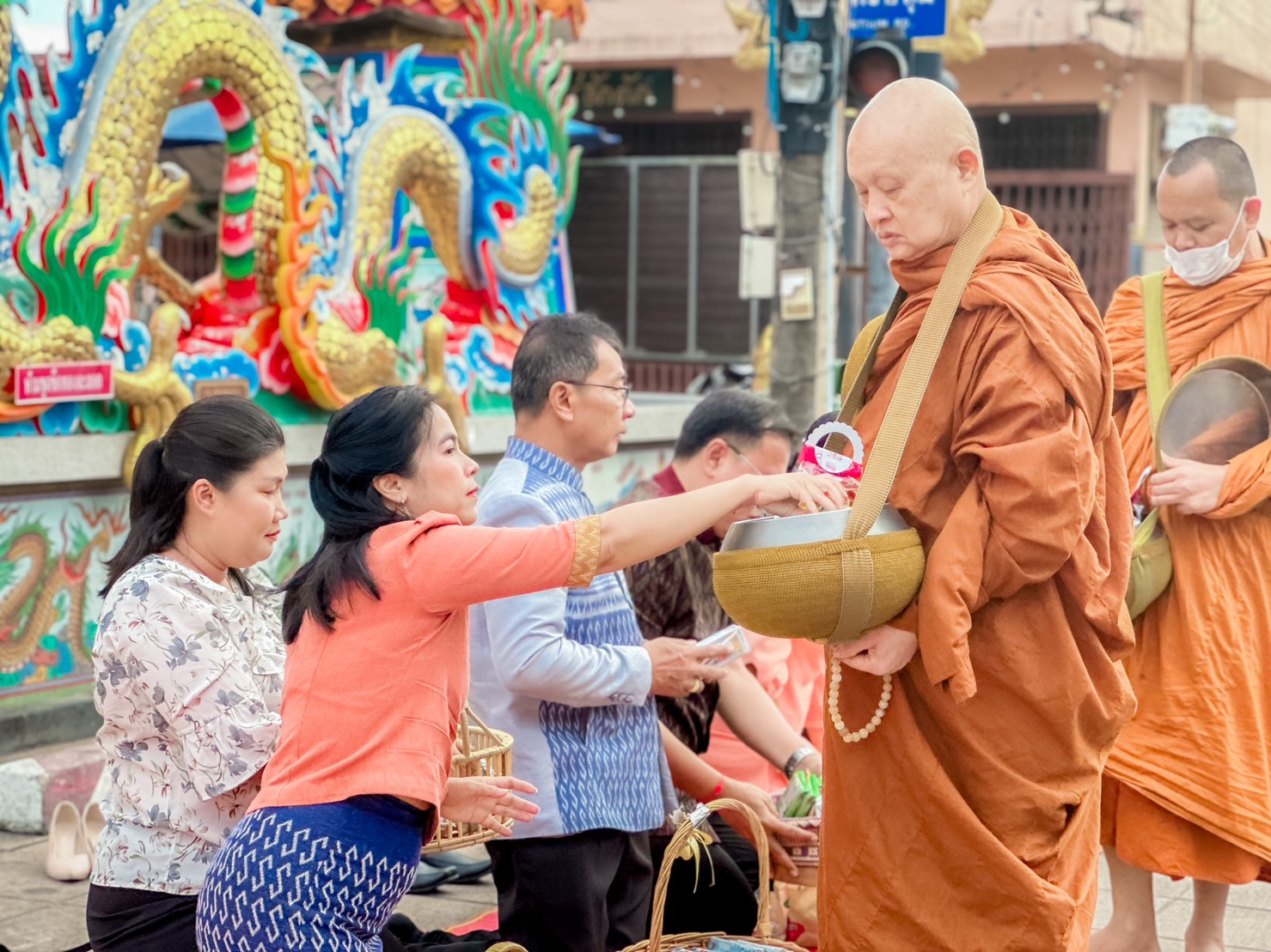 วันที่ 15 มิ.ย. 2566 (11:18 น.)นางสาวนงค์นุช อุดมคำ พาณิชย์จังหวัดยโสธร พร้อมด้วยเจ้าหน้าที่กลุ่มทะเบียนธุรกิจและอำนวยความสะดวกทางการค้า สำนักงานพาณิชย์จังหวัดยโสธร ร่วมกิจกรรมทำบุญตักบาตร ณ บริเวณถนนคนเดินยโสธร เมืองเก่าบ้านสิงห์ท่า(ถนนหน้าศาลเจ้าพ่อหลักเมือง) ตำบลในเมือง อำเภอเมืองยโสธร จ.ยโสธร โดยมี นายสุวัฒน์ เข็มเพชร รองผู้ว่าราชการจังหวัดยโสธร เป็นประธานฯ นำข้าราชการ บุคลากร เจ้าหน้าที่ หน่วยงานภาครัฐ/เอกชน พ่อค้า ประชาชน ร่วมกิจกรรม