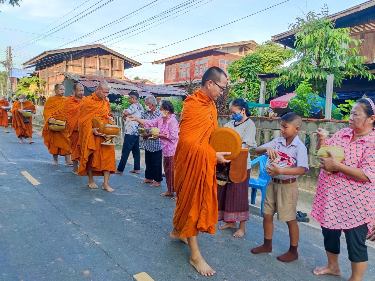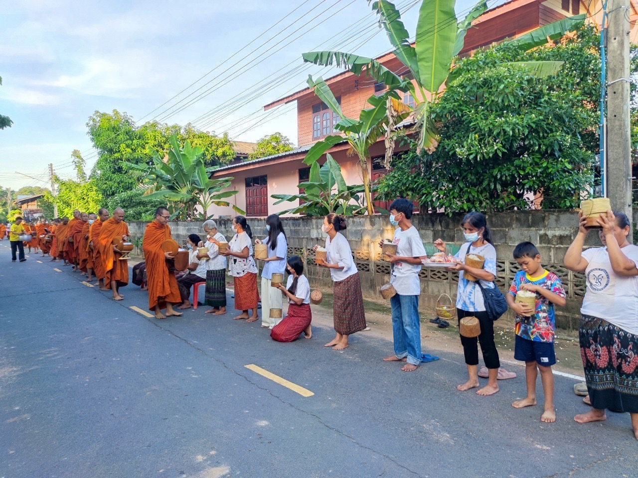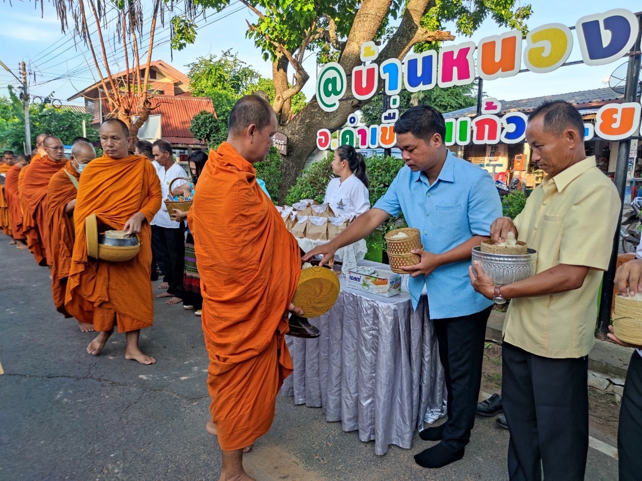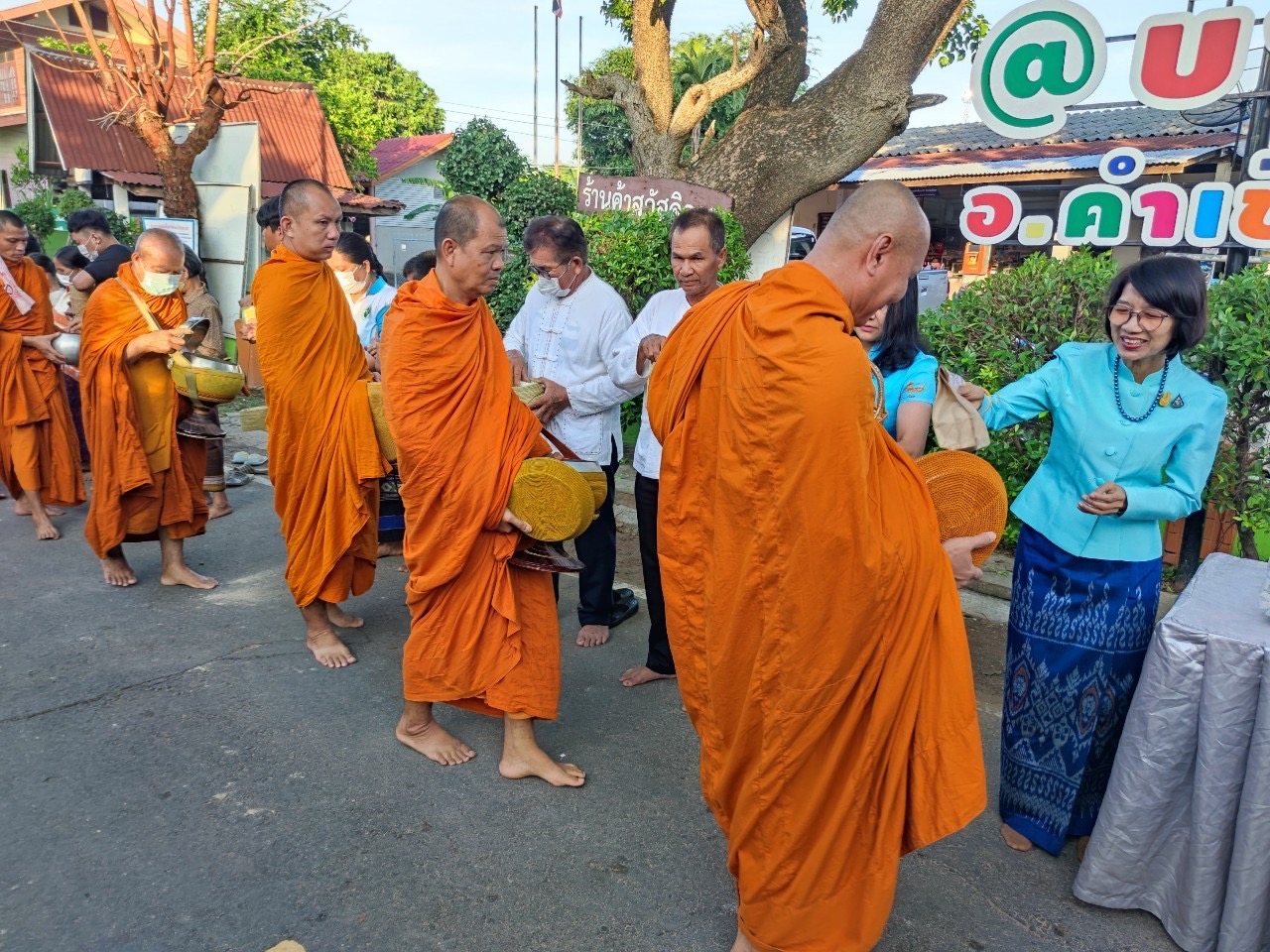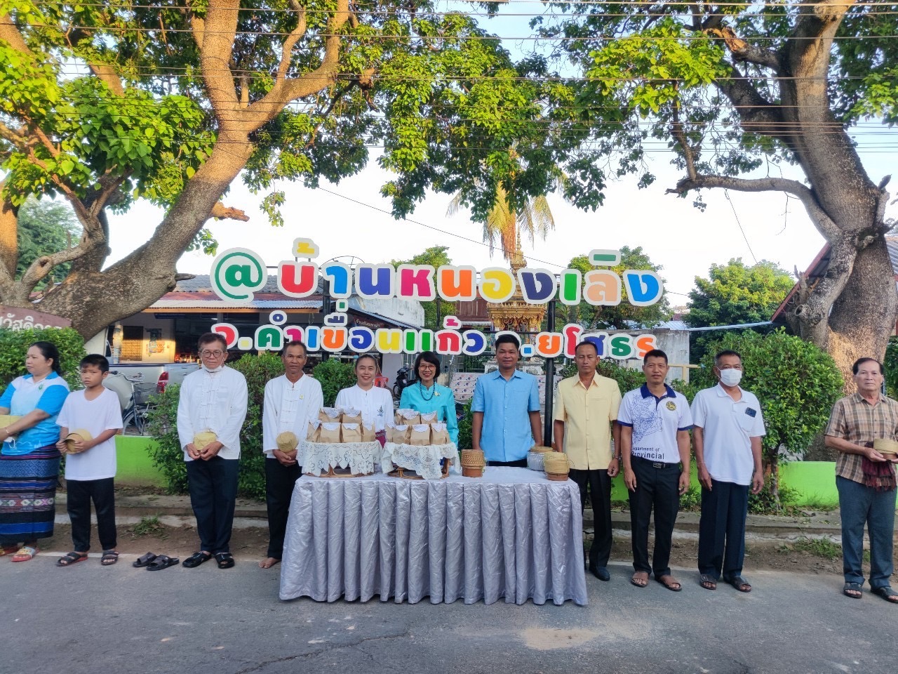 กิจกรรมสวมใส่ผ้าไทยทำบุญตักบาตรสร้างถนนสายวัฒนธรรม และถวายภัตตาหารแด่พระสงฆ์ ณ วัดหนองเลิง หมู่ที่ ๓ ตำบลแคนน้อย
