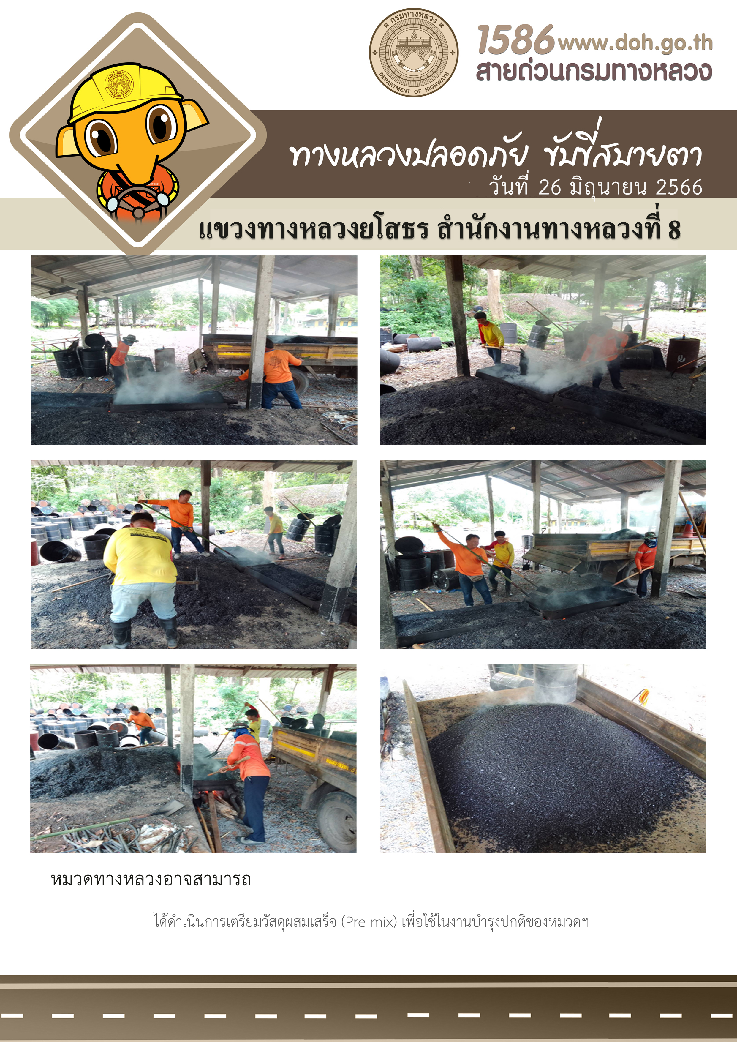 วันที่ 26 มิถุนายน 2566 หมวดทางหลวงอาจสามารถ ได้ดำเนินการเตรียมวัสดุผสมเสร็จ (Pre mix) เพื่อใช้ในงานบำรุงปกติของหมวดฯ