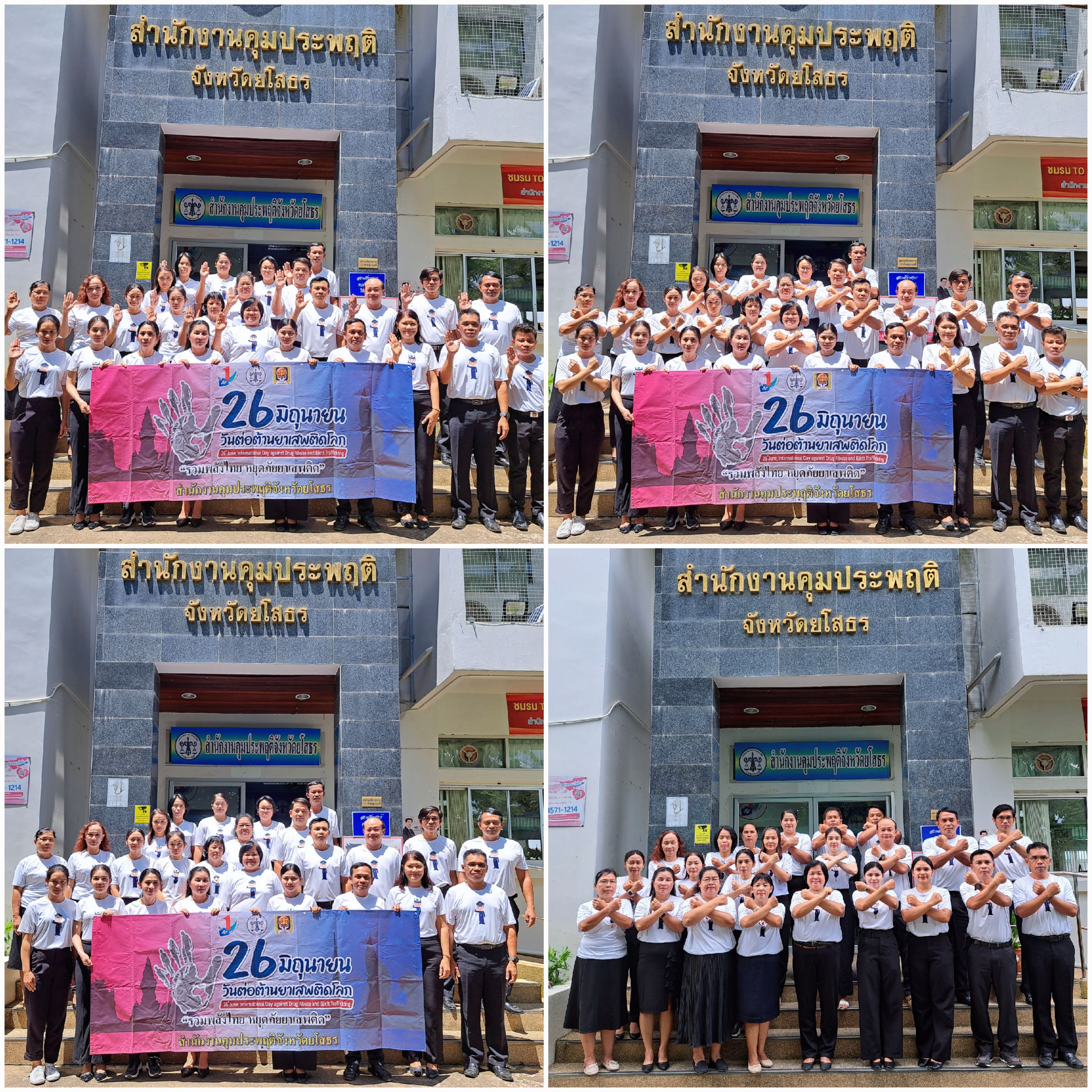 สำนักงานคุมประพฤติจังหวัดยโสธร รวมพลัง ประกาศเจตนารมณ์ ต่อต้านการทุจริต และจัดกิจกรรมรณรงค์ประชาสัมพันธ์ เนื่องในวันต่อต้านยาเสพติดโลก (๒๖ มิถุนายน) ประจำปี ๒๕๖๖