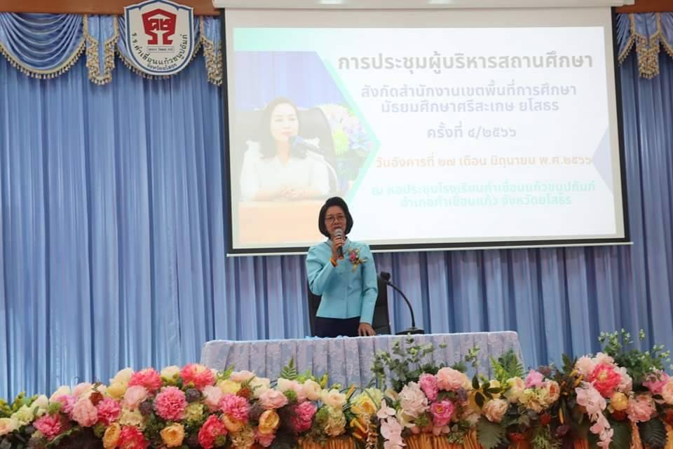 ต้อนรับ ดร.รัตติกร ทองเนตร ผู้อำนวยการสำนักงานเขตพื้นที่การศึกษามัธยมศึกษาศรีสะเกษ ยโสธร ในการประชุมผู้บริหารสถานศึกษา สำนักงานเขตพื้นที่การศึกษามัธยมศึกษาศรีสะเกษ ยโสธร ครั้งที่ ๔/๒๕๖๖