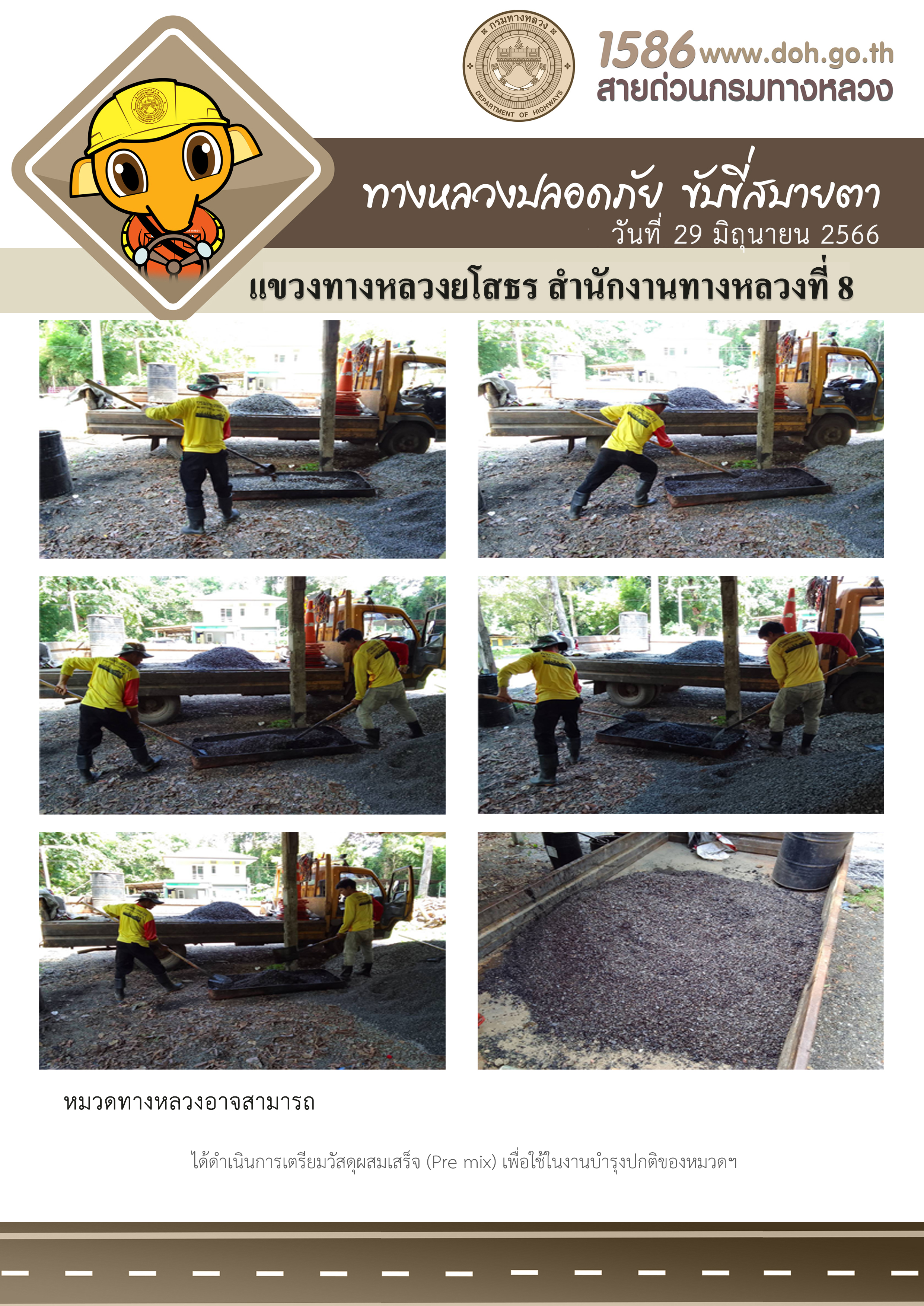 วันที่ 29 มิถุนายน 2566 หมวดทางหลวงอาจสามารถ ได้ดำเนินการเตรียมวัสดุผสมเสร็จ (Pre mix) เพื่อใช้ในงานบำรุงปกติของหมวดฯ