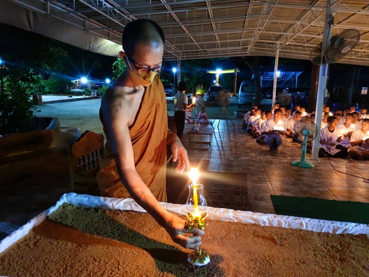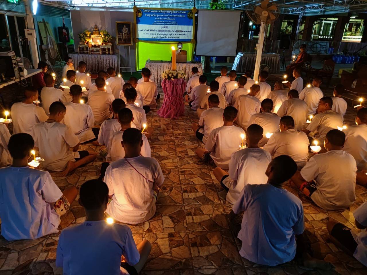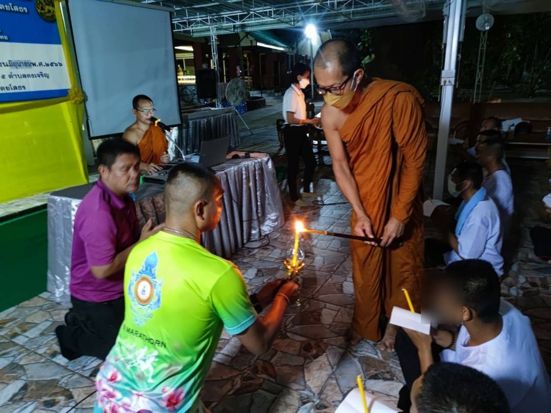 ทั้งนี้ ได้รับความเมตตาจากพระครูวาปีธรรมวิโรจน์ เจ้าอาวาสวัดบ้านหนองเลิง ตำบลแคนน้อย ทำพิธีจุดเทียนอุดมการณ์ และได้รับความเมตตาจากพระอธิการสุรัตน์ ฐิติญาโณ นำผู้เข้ารับการอบรมไหว้ พระสวดมนต์ ทำวัตรเย็น นั่งสมาธิ