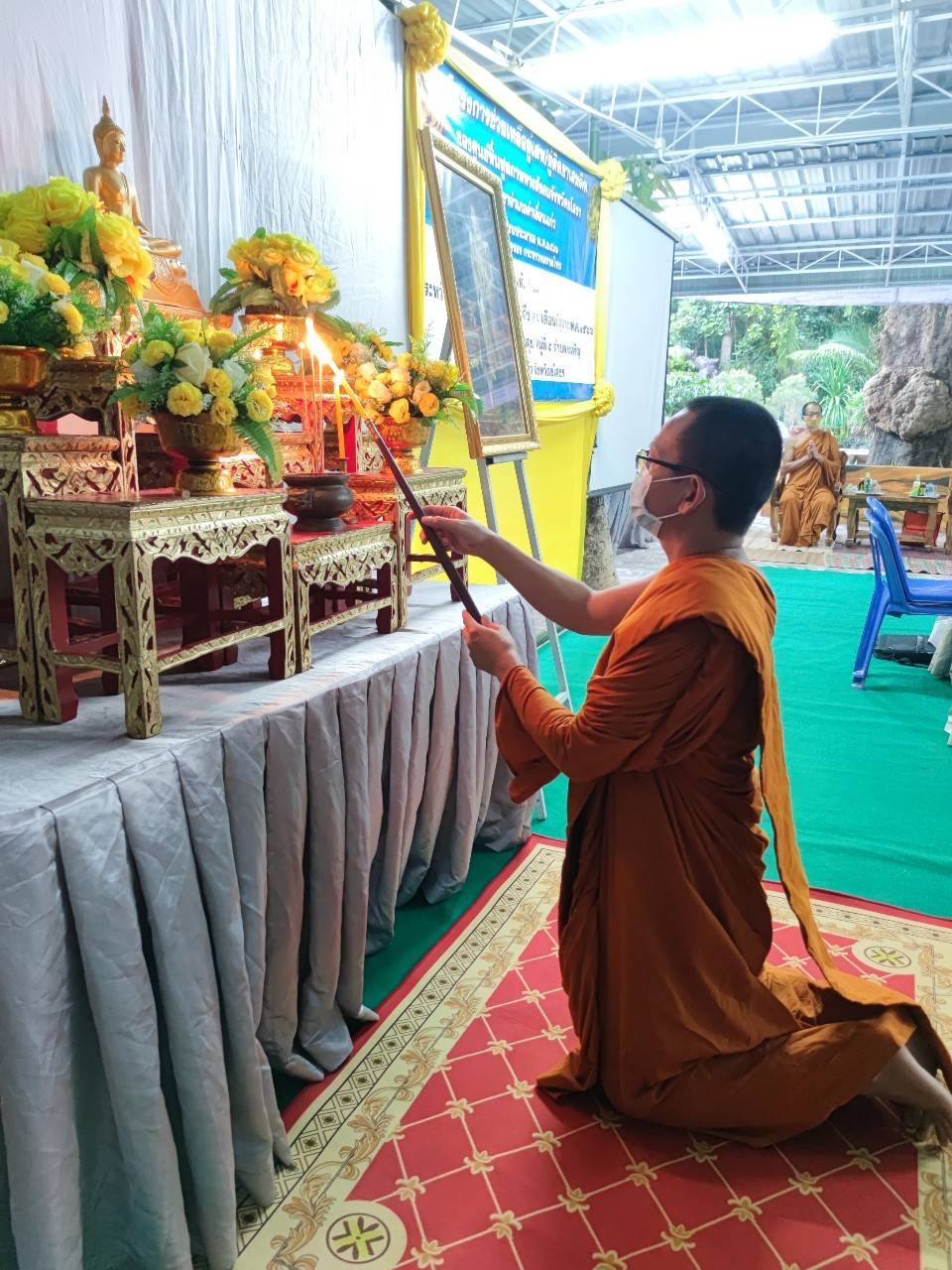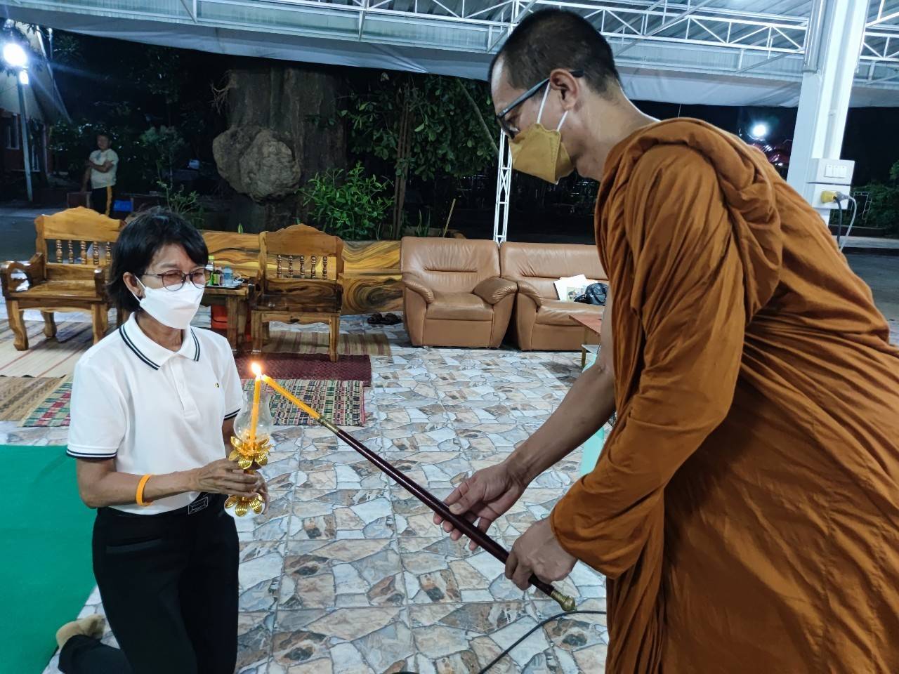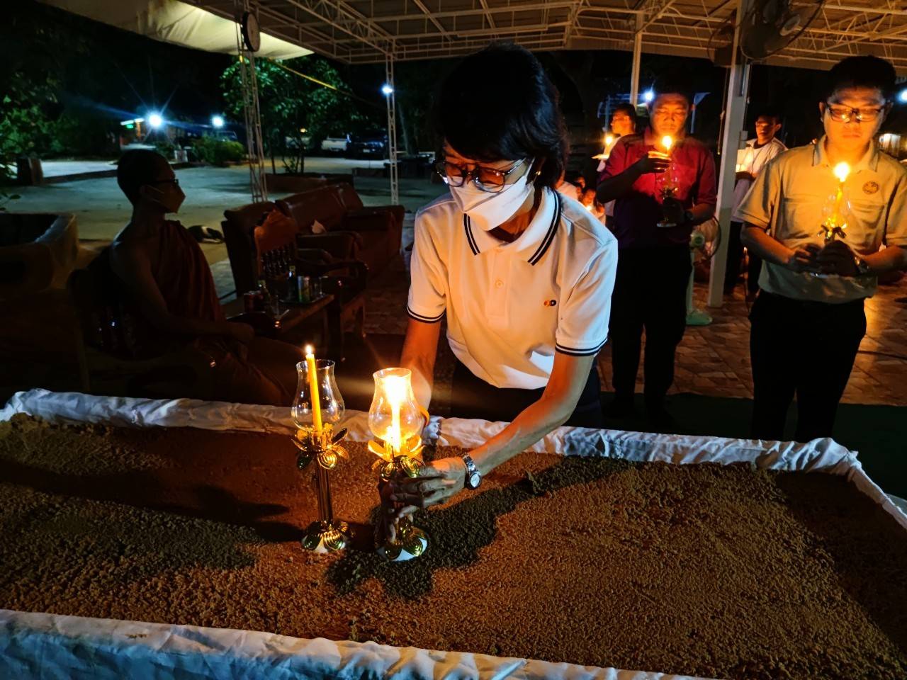 ทั้งนี้ ได้รับความเมตตาจากพระครูวาปีธรรมวิโรจน์ เจ้าอาวาสวัดบ้านหนองเลิง ตำบลแคนน้อย ทำพิธีจุดเทียนอุดมการณ์ และได้รับความเมตตาจากพระอธิการสุรัตน์ ฐิติญาโณ นำผู้เข้ารับการอบรมไหว้ พระสวดมนต์ ทำวัตรเย็น นั่งสมาธิ