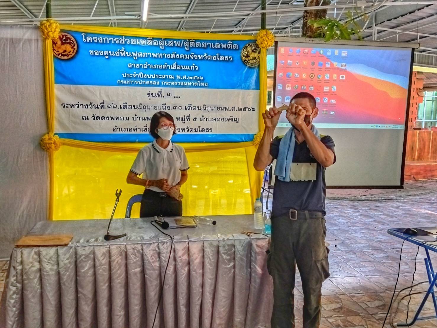 การดำเนินการโครงการช่วยเหลือผู้เสพ/ผู้ติดยาเสพติดของศูนย์ฟื้นฟูสภาพทางสังคมจังหวัดยโสธรสาขาอำเภอคำเขื่อนแก้ว ประจำปีงบประมาณ พ.ศ. ๒๕๖๖ รุ่นที่ ๓
