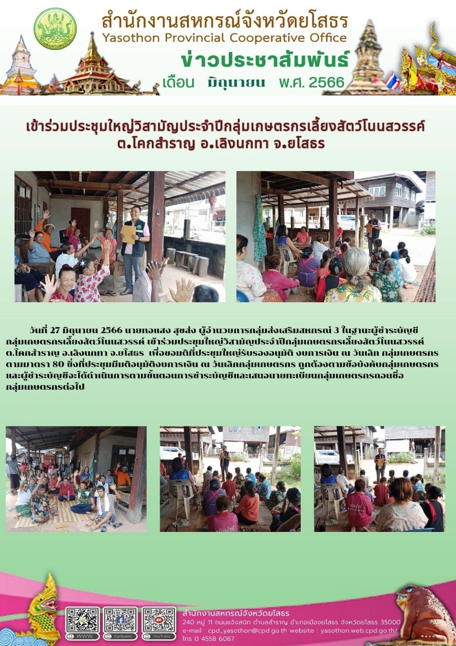 ผู้โพสต์ : [สำนักงานสหกรณ์จังหวัดยโสธร] ทั่วไป